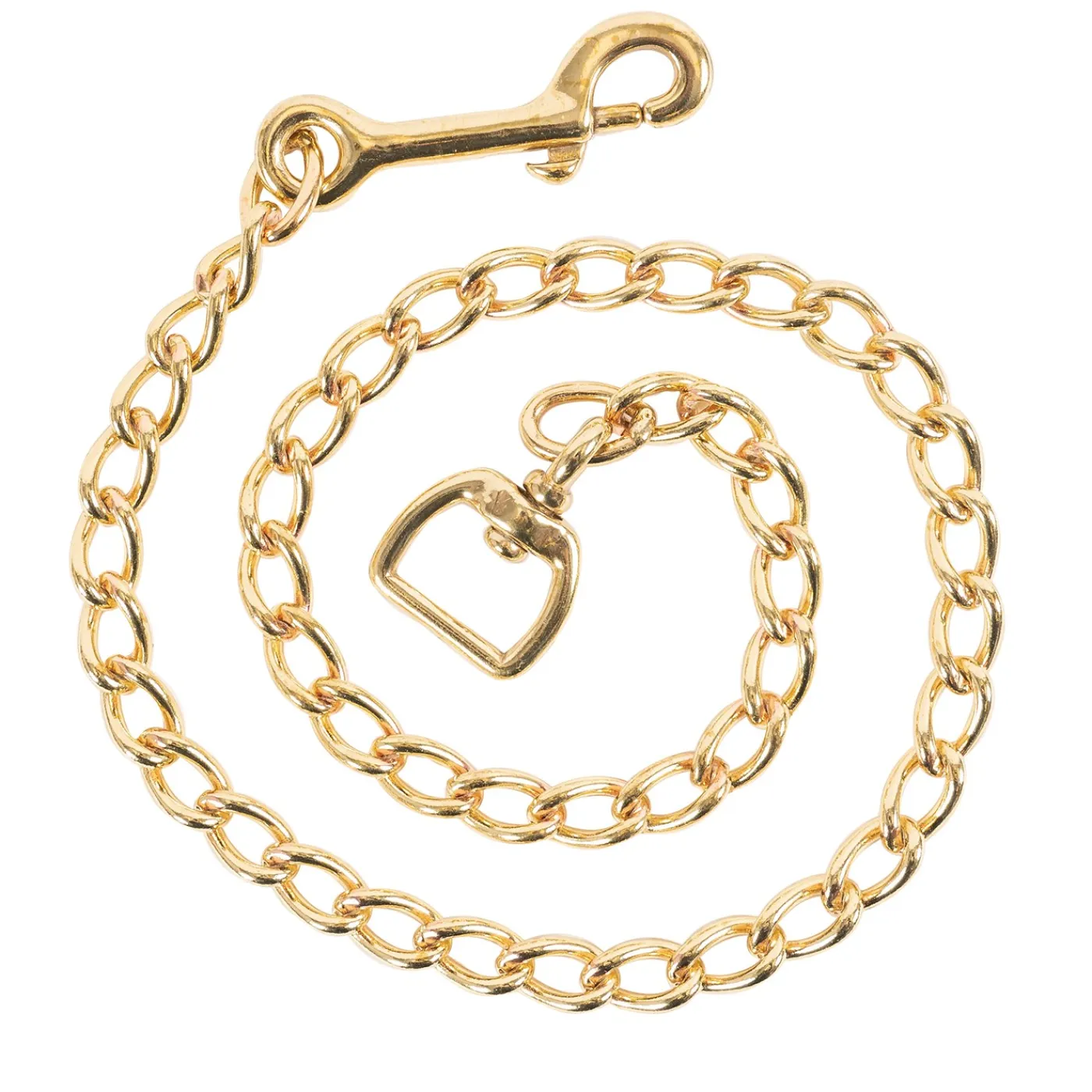 Convenient and super durable 36 inch solid brass chain with a swivel attachment at one end and a spring clip on the other.