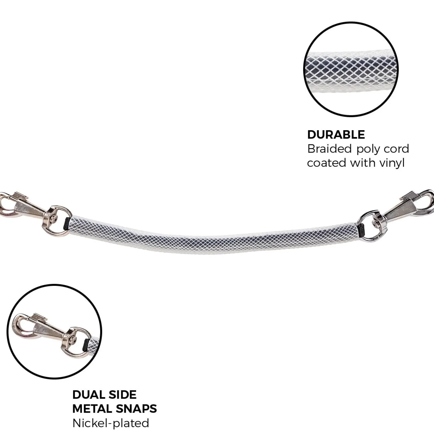 - Nickel plated snaps on each end