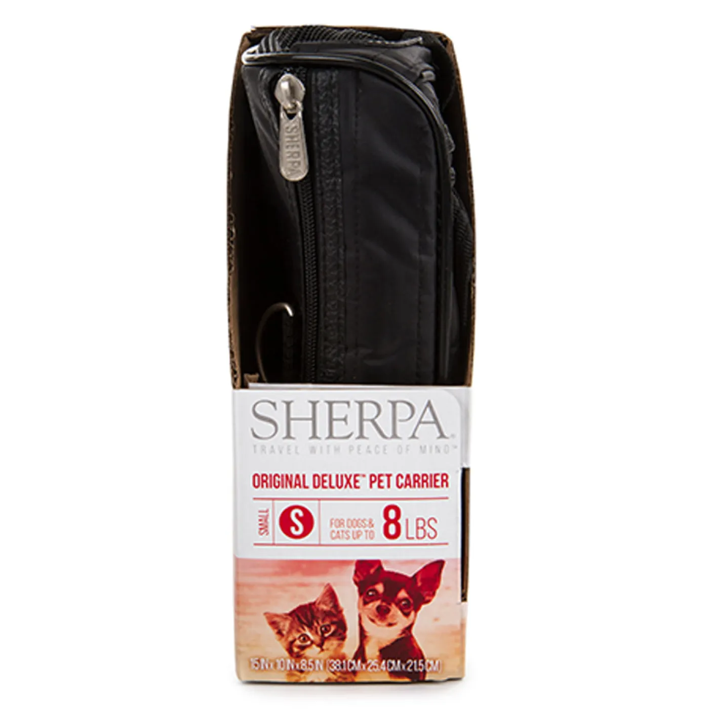 Your pet will travel in comfort and style in the Sherpa Original Deluxe Carrier. Perfect for airline travel, the patented spring wire frame allows the rear end of the carrier to be pushed down several inches to conform to under-seat requirements. This carrier has mesh panels for ventilation, locking zippers to prevent accidental escapes, and includes a seat belt security strap which doubles as a luggage strap. Top and side entry options make it much easier to comfortably load pets in the carrier. A large side zippered pocket can hold your important pet travel documents and anything else your pet may need. The no-slip shoulder strap is adjustable and features a padded support for comfort. A soft, cozy, removable, and machine-washable faux lambskin liner is included.