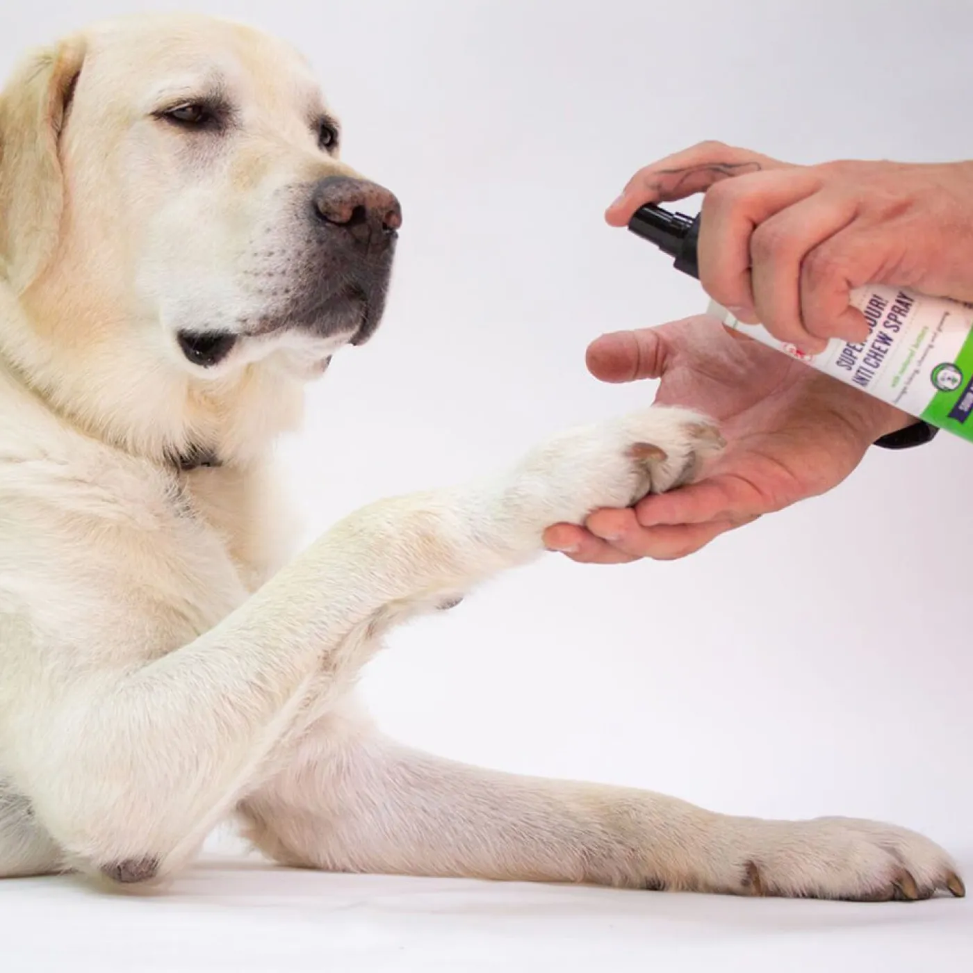 Skout’s Honor Super Sour Anti Chew Spray discourages licking, chewing and gnawing on hot spots, paws and household items such as cages, furniture, power cords, shoes, clothing, bedding and more. This sour-tasting spray contains natural bitters to discourage pets. Pet safe, alcohol-free and eco-friendly. 8 oz./236 mL.