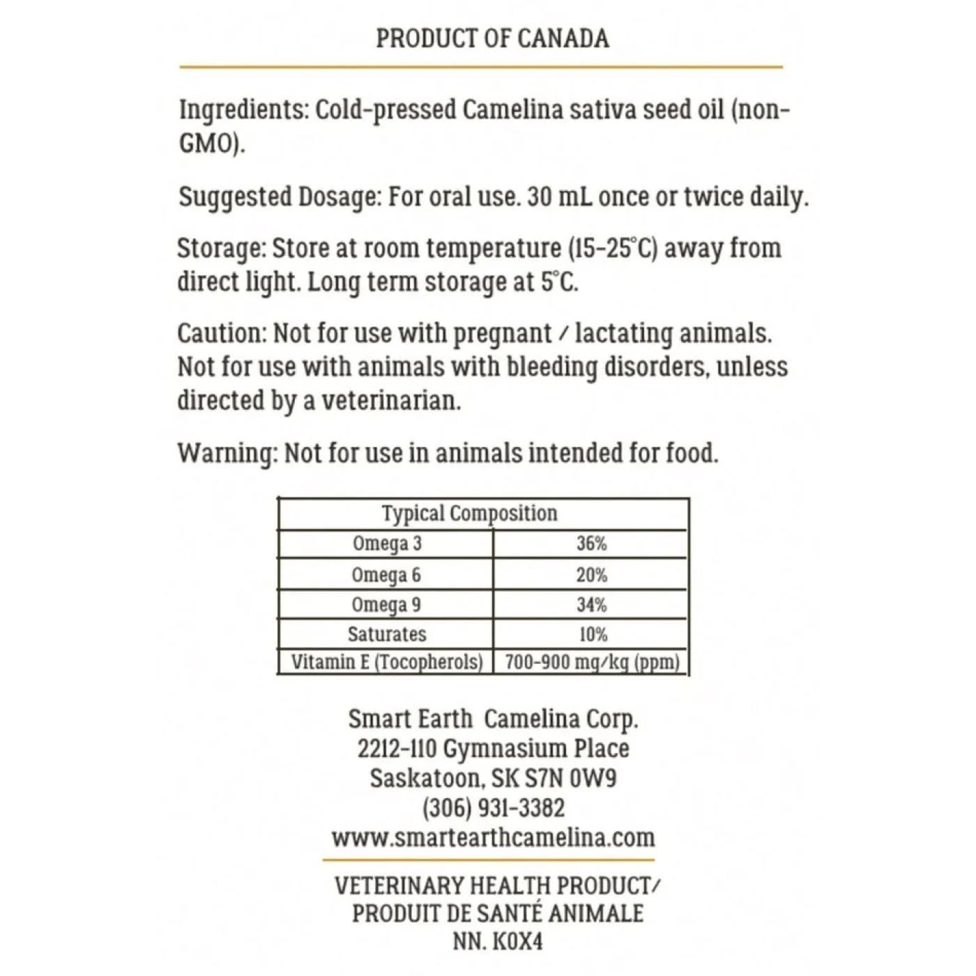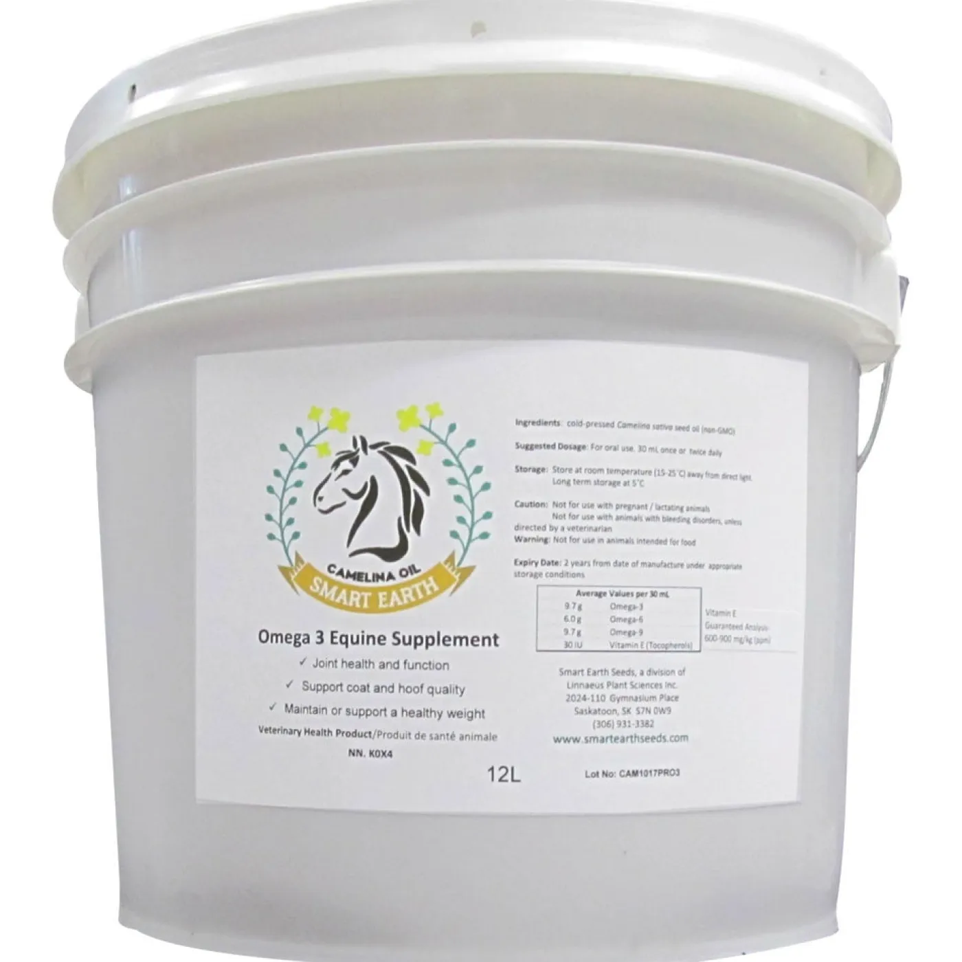 Smart Earth Camelina Oil is a palatable omega supplement that may promote healthy weight gain, support dry skin and coat, and support mane and tail quality. Camelina Oil contains Vitamin E that may help your horse grow a healthier coat. Relative to other vegetable sources of omega fatty acids, camelina oil contains the most balanced profile of omega 3 and 6 with a ratio 1.2-1.6:1 and high ALA content. Smart Earth Camelina Oil is non-GMO, glyphosate free, cold pressed and made in in a human food grade facility. Sustainably produced, Smart Earth uses crops that require minimal irrigation or fertilization, and has a smaller carbon footprint than protein-based omega sources such as fish oils. Produced in Saskatchewan, Canada.