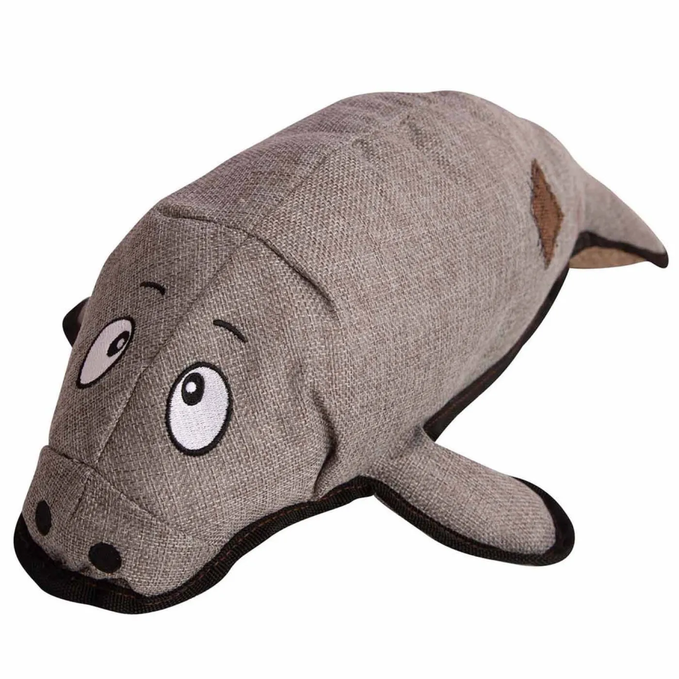 Get two fun toys in one when you and your pup play with Murray the Manatee. This adorable ocean creature is made of durable linen material and conceals a spiky rubber ball. After your dog finds the ball, play fetch or hide it again for hours of investigative fun. Murray the Manatee features a squeaker and crinkle material for a satisfying sound and feel during chew time or play. He is an excellent choice for medium to larger dogs. As always, this Snugarooz 2-in-1 dog toy is non-toxic. Round out the full 2-in-1 trio with Murray’s friends Sophie the Starfish and Sally the Stingray. Measures 21″L.