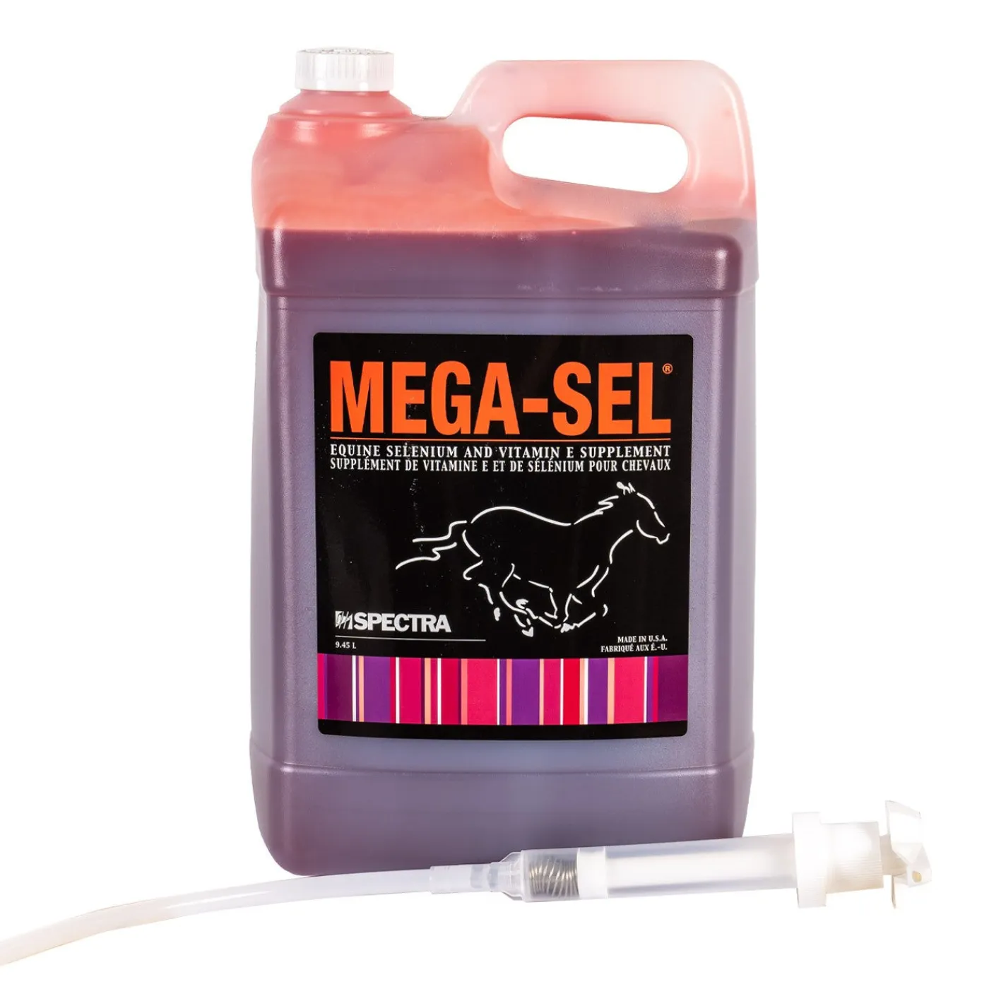 Mega-Sel is a patented liquid Vitamin E and selenium supplement formulated for unparalleled absorption of antioxidants. This highly palatable liquid will not sift through feed or be pushed aside by finicky eaters. Each ounce contains sodium selenite equivalent to 1.03mg selenium and 50 I.U. Vitamin E.