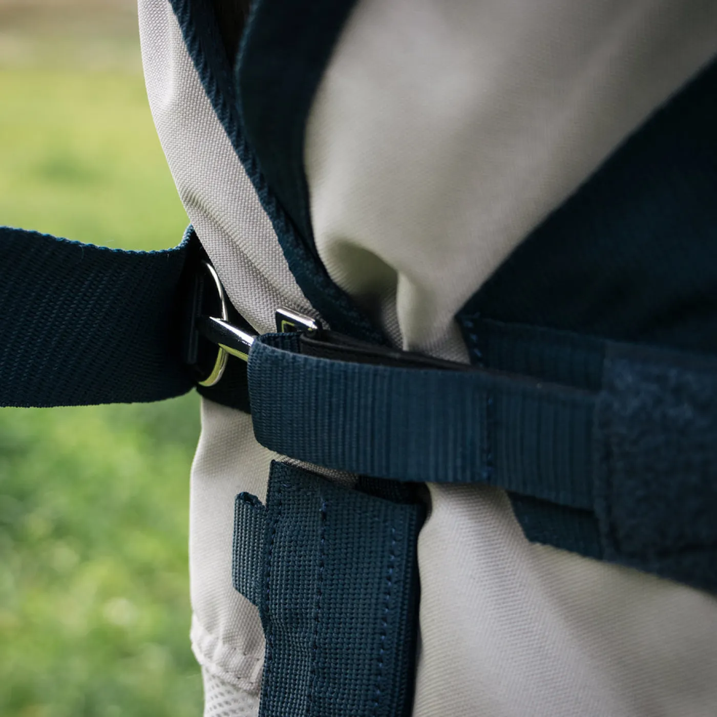 - Triple surcingle closure belly band