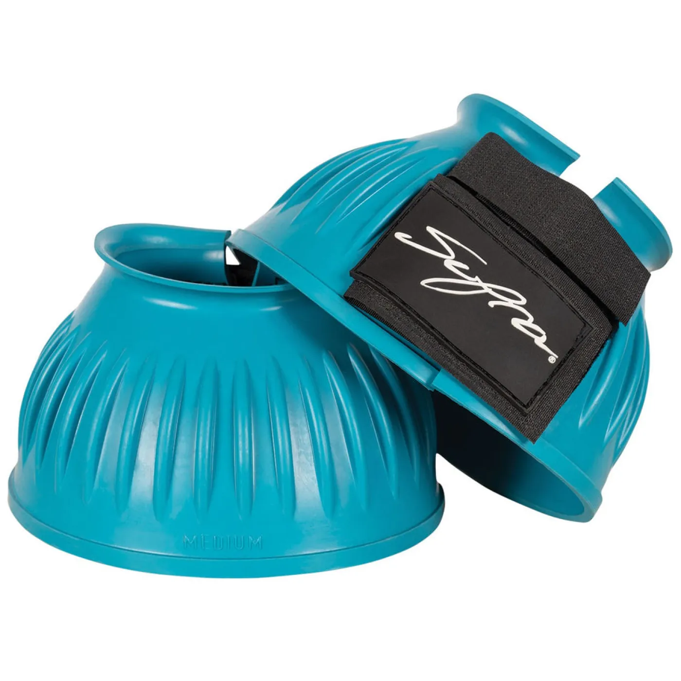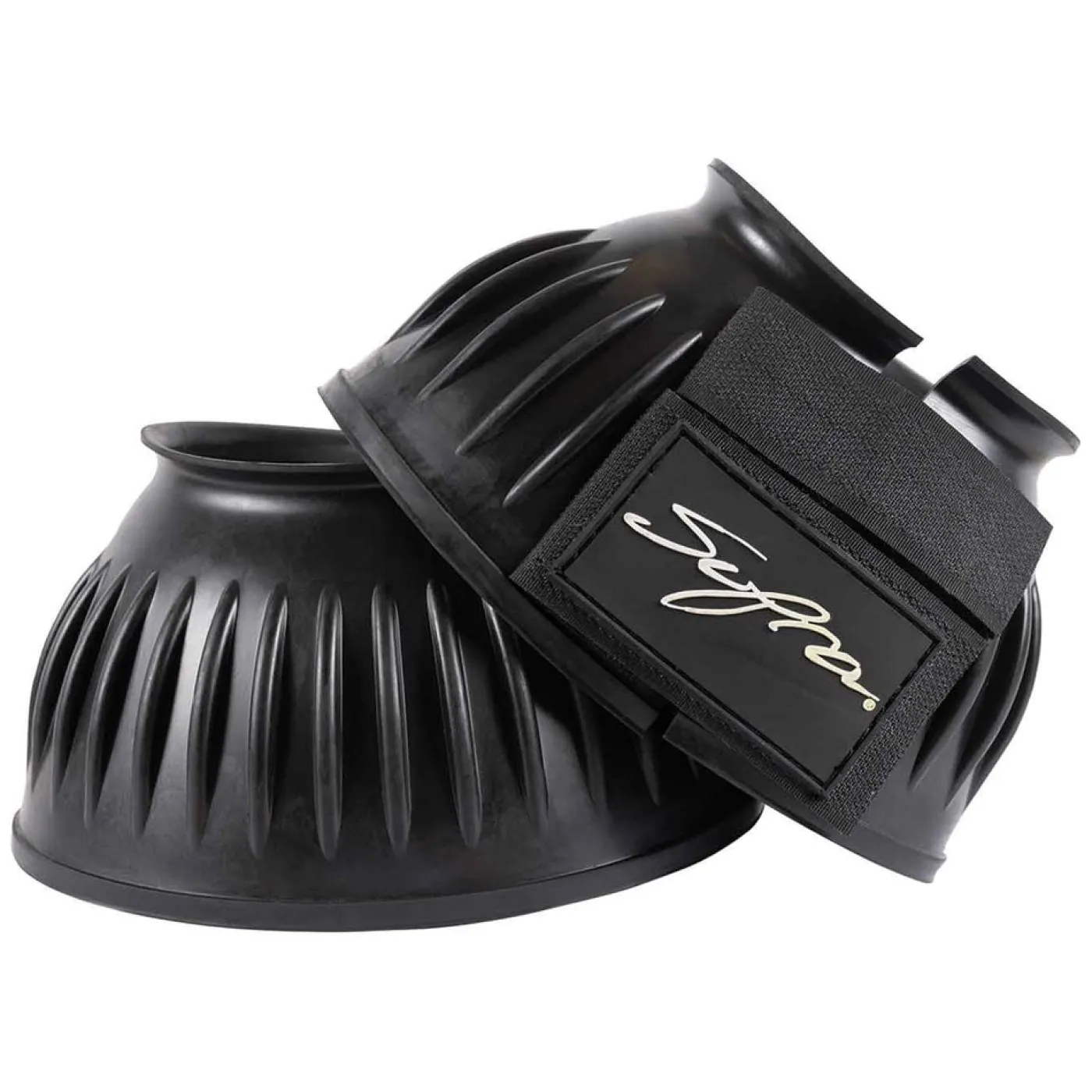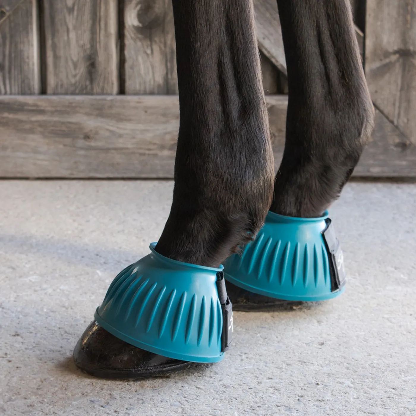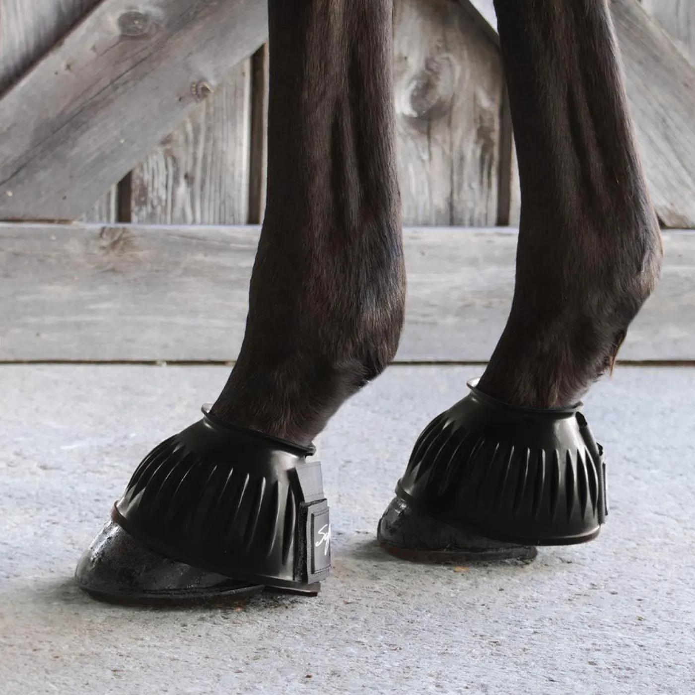 Ribbed rubber bell boots attach with double-locking Velcro closures. Simple yet durable design works for riding or turnout.