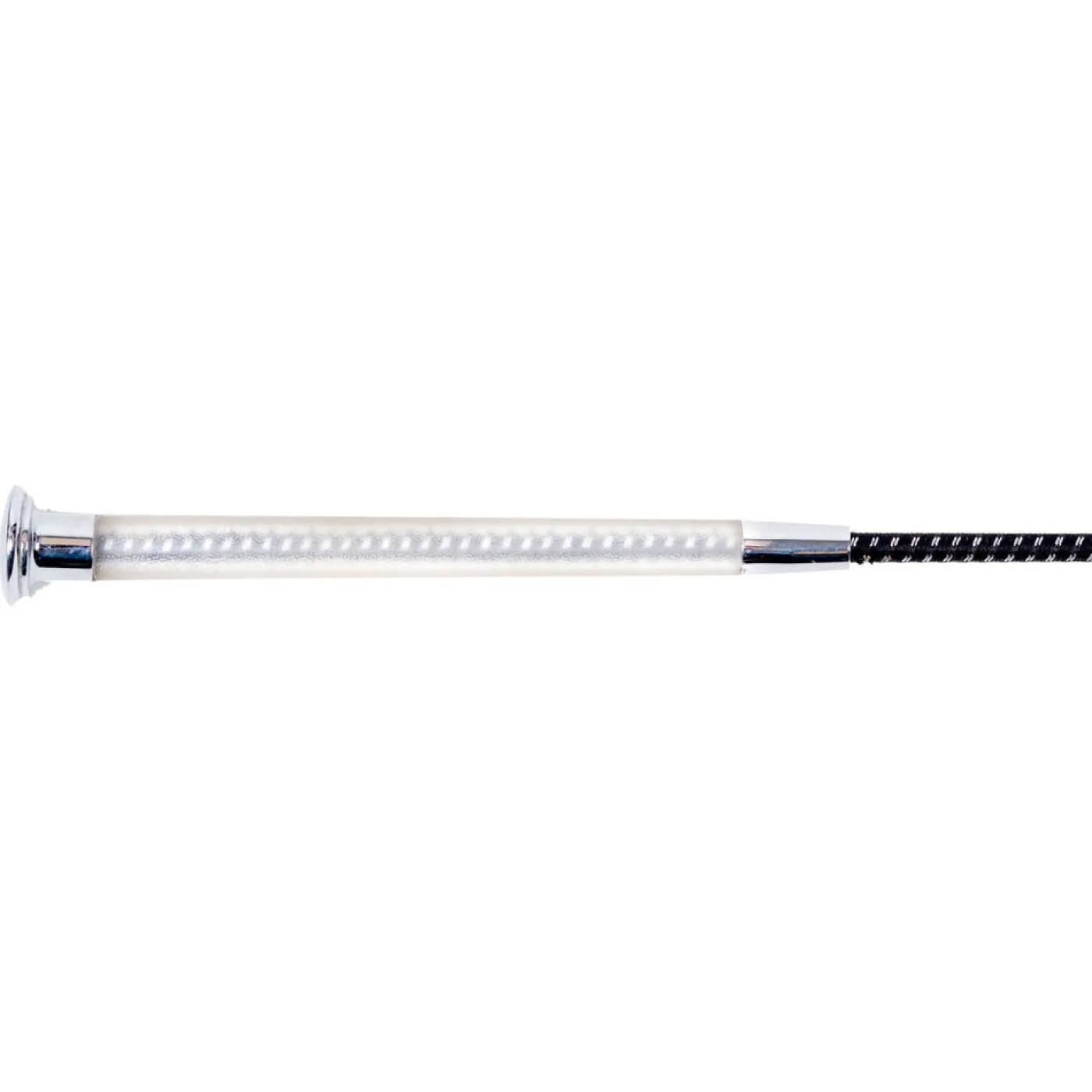 The Supra Dressage Whip is perfect for schooling and features a 10 cm lash and rubber grip for added control. Complete with silver accents down the shaft for added elegance. Approx. 39″/100 cm shaft with 4″/10 cm lash for a total length of just under 44″.
