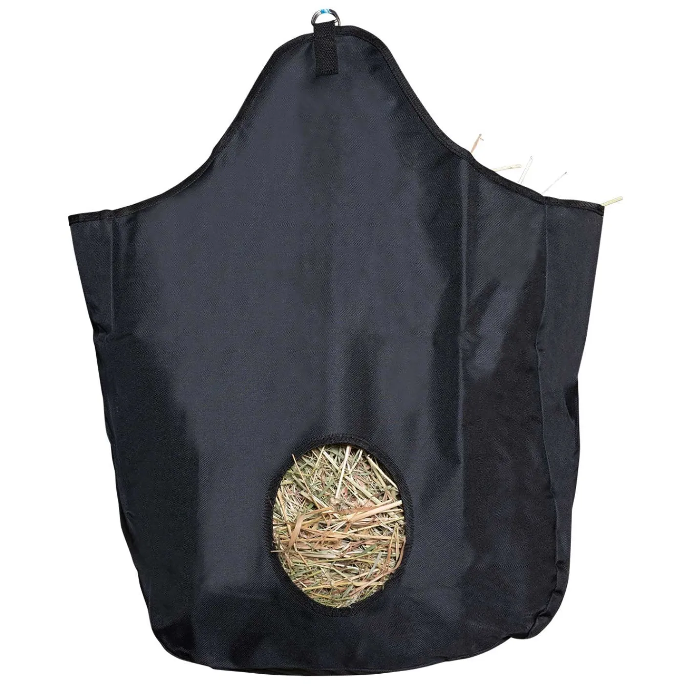 This nylon hay bag is easy to fill and hang. Great for trailering! Less mess, less waste.