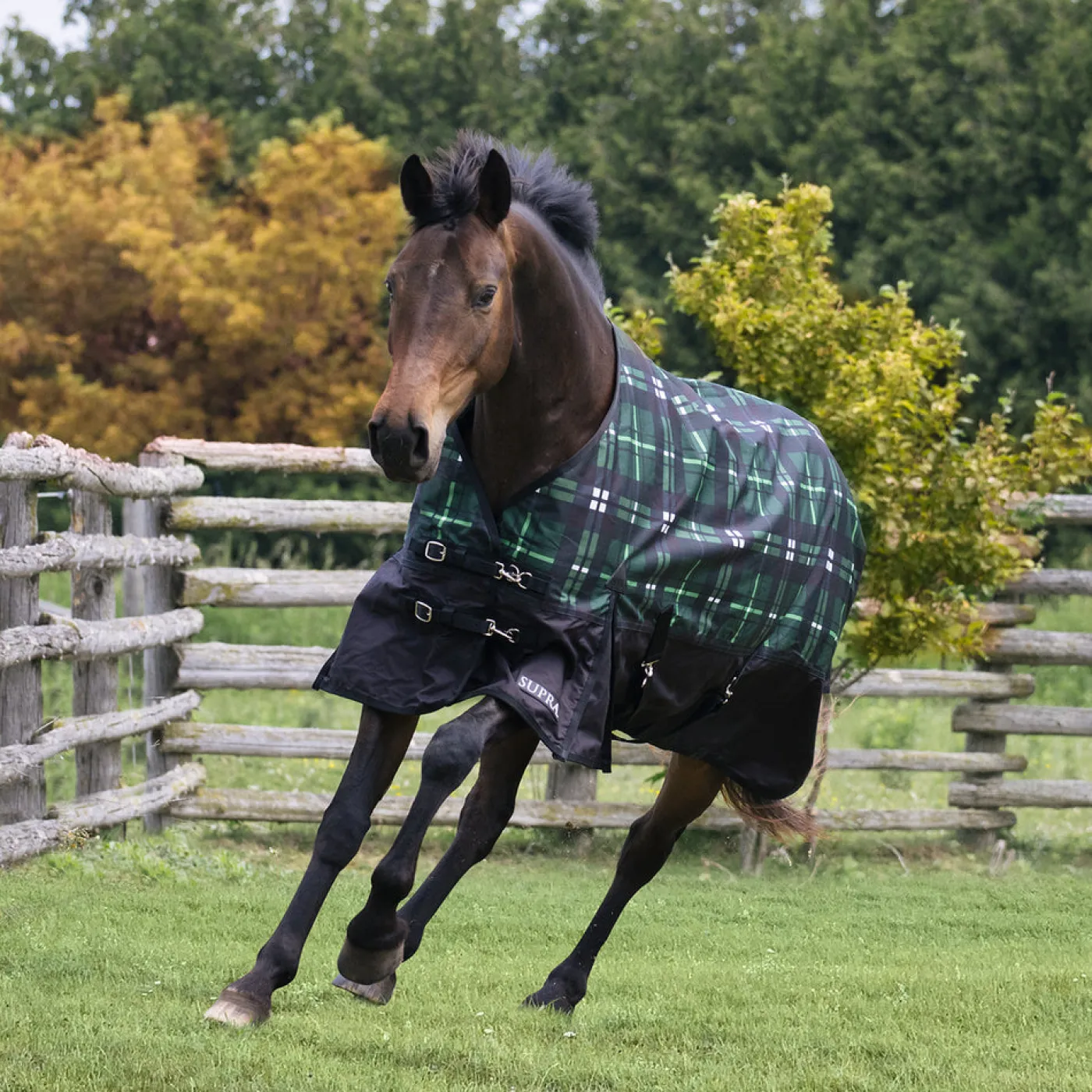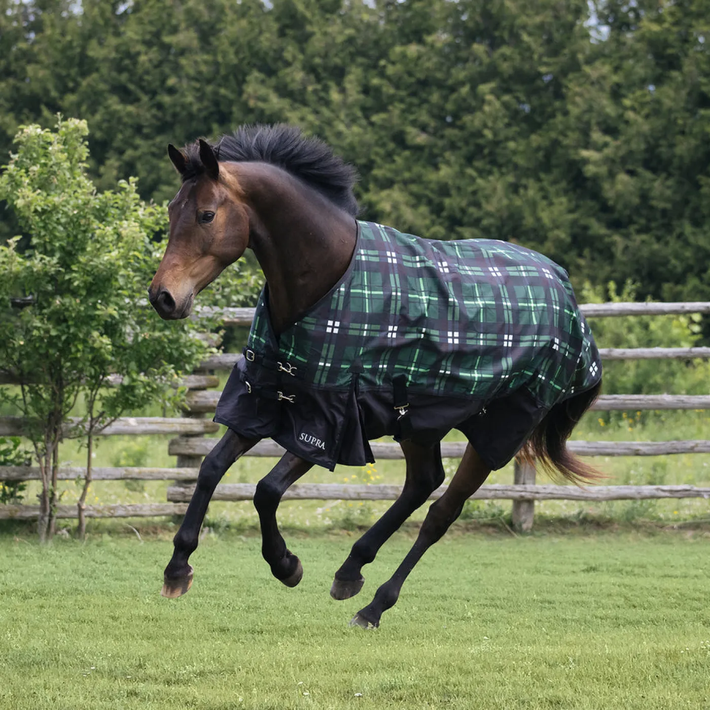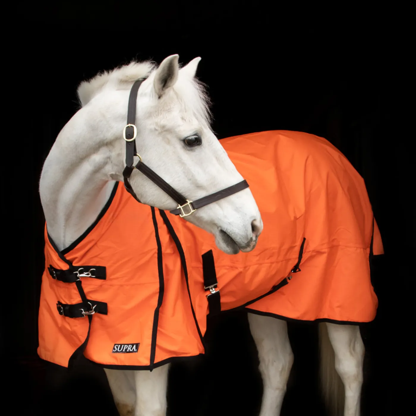 The Supra Rainsheet offers best-in-class protection against the elements! Features a waterproof and breathable construction with no back seams. Made with a 210 denier nylon lining and 600 denier exterior to help keep your horse comfortable and dry. Complete with cross-biased surcingles, double front buckle closures, and adjustable leg straps.