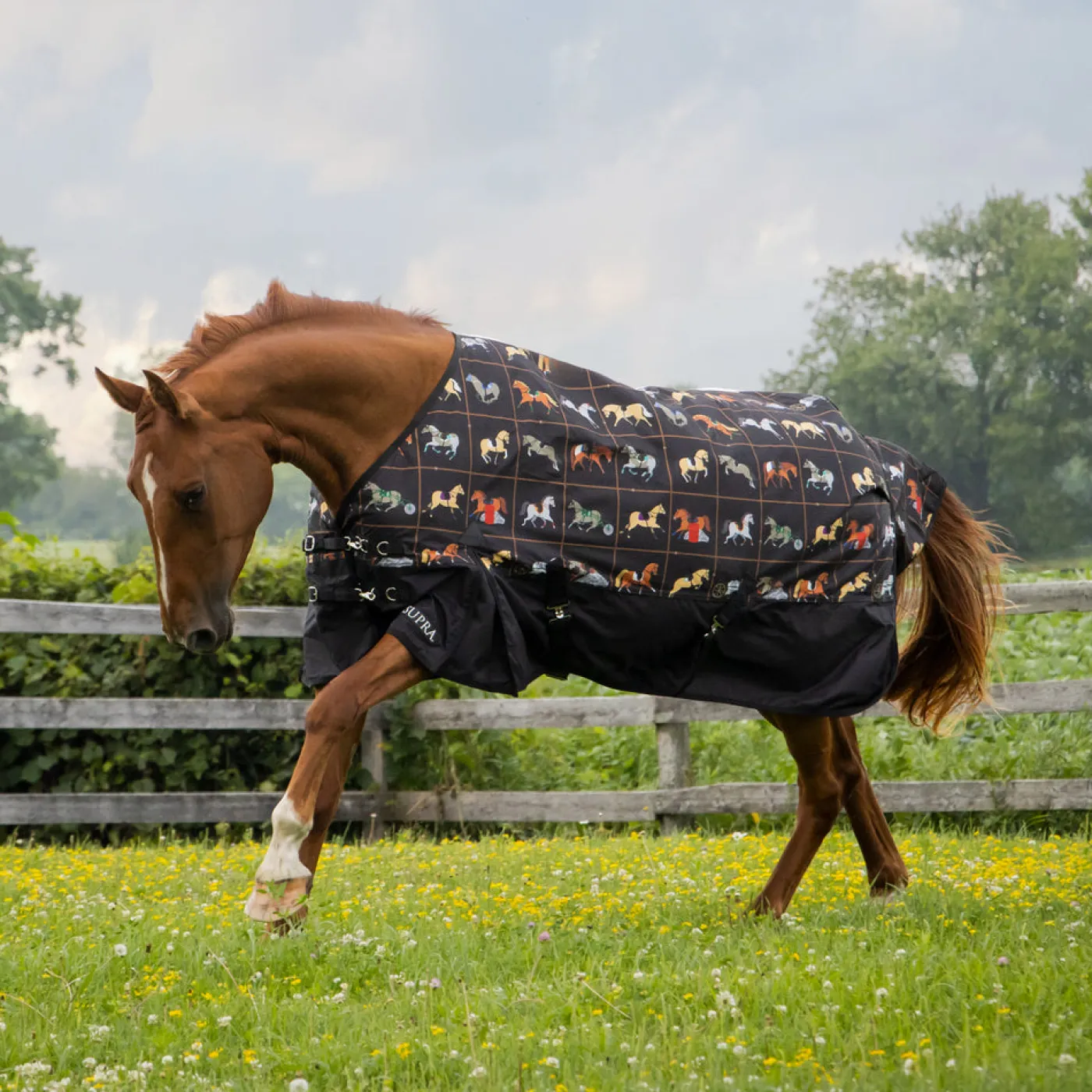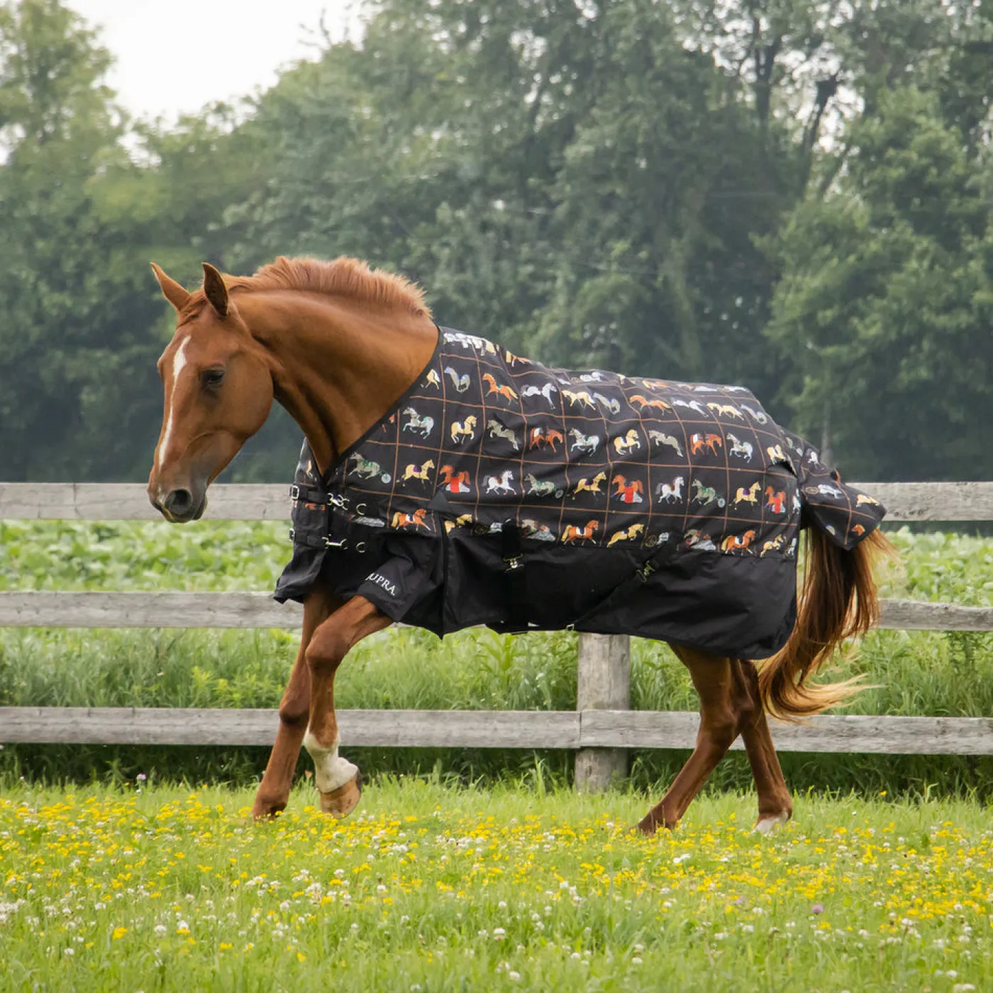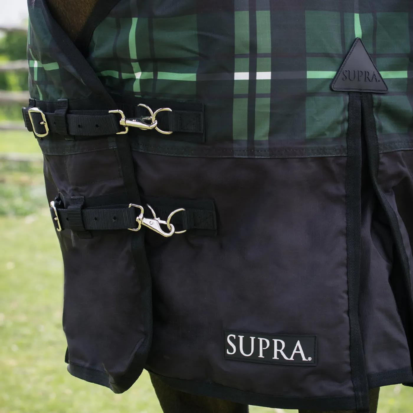 The Supra Rainsheet offers best-in-class protection against the elements! Features a waterproof and breathable construction with no back seams. Made with a 210 denier nylon lining and 600 denier exterior to help keep your horse comfortable and dry. Complete with cross-biased surcingles, double front buckle closures, and adjustable leg straps.