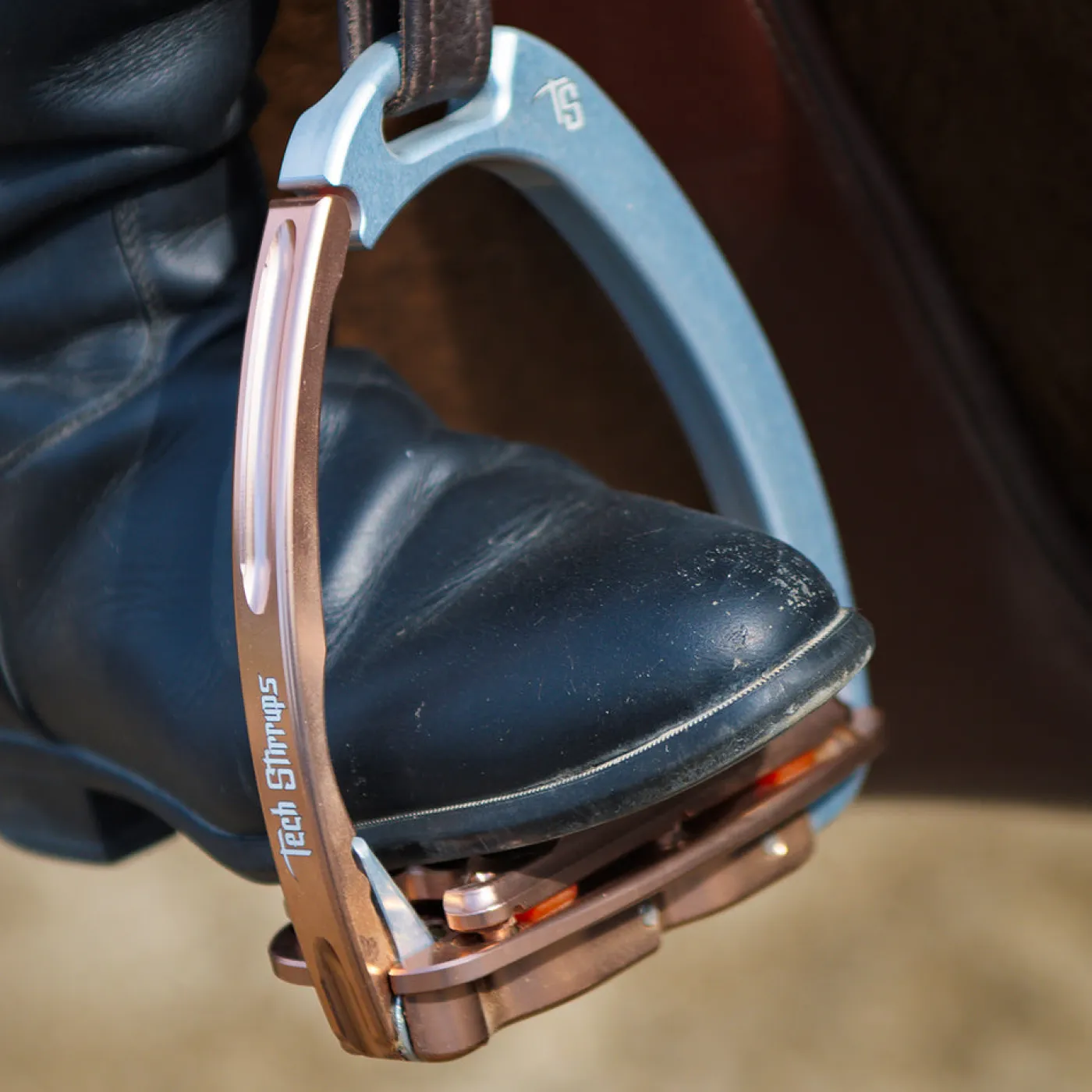 The Venice Safety Design of the Tech Venice Plus EVO Stirrups originates in a unique mechanism that allows the foot to release in case of need with minimal force. The spring installed allows the mobile part to remain closed during use, and to open when needed through the push of the foot. The mobile part is designed to return to its closed position so there is no protruding part. Features triangle shaped teeth that enhance the stability feeling, and is designed for water and mud.