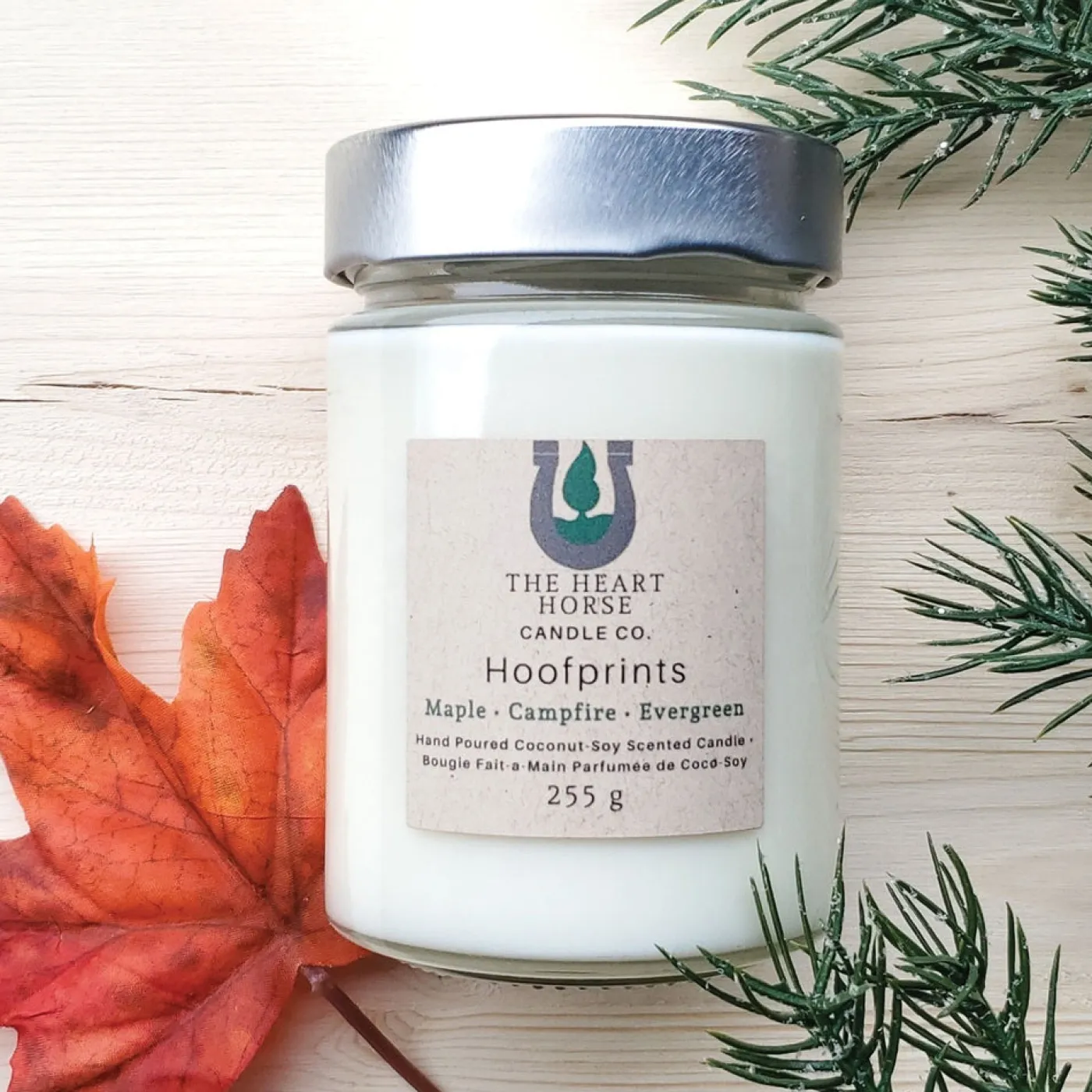 The Heart Horse Candle Co. Hoofprints Candle is inspired by hacking in the Canadian countryside. Sweet, and woodsy with a hint of smoke, and offers notes of maple, campfire, and evergreen trees. Features notes of carrot cake, spice, and frosting. Handcrafted with high-quality fragrance oils, free of paraffin, phthalates, and dyes. Complete with a 100% cotton wick.