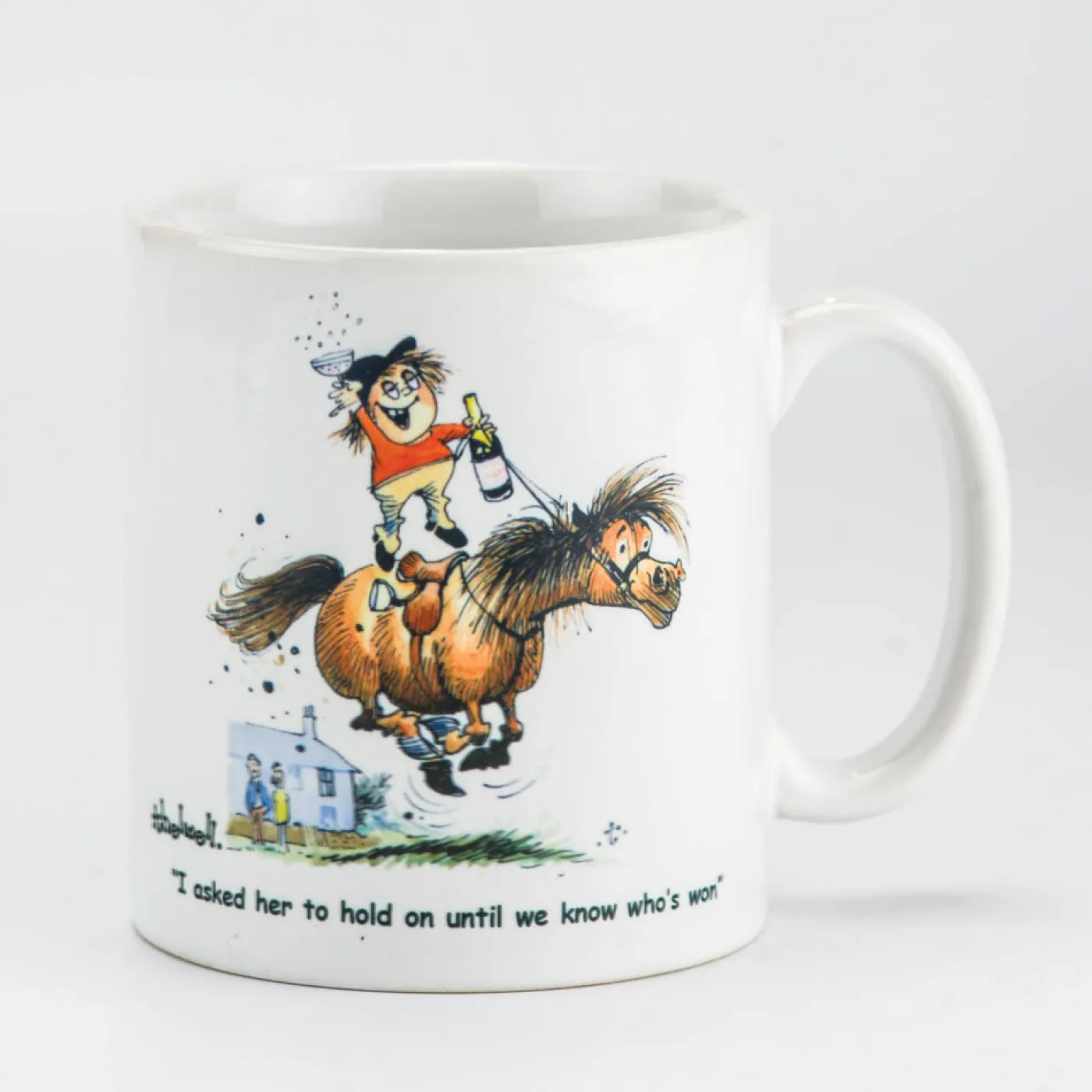 The Thelwell Mug is adorned with delightful horse riding cartoons. Designed for convenience and are dishwasher safe and microwave friendly. Encased in a compostable cardboard box.