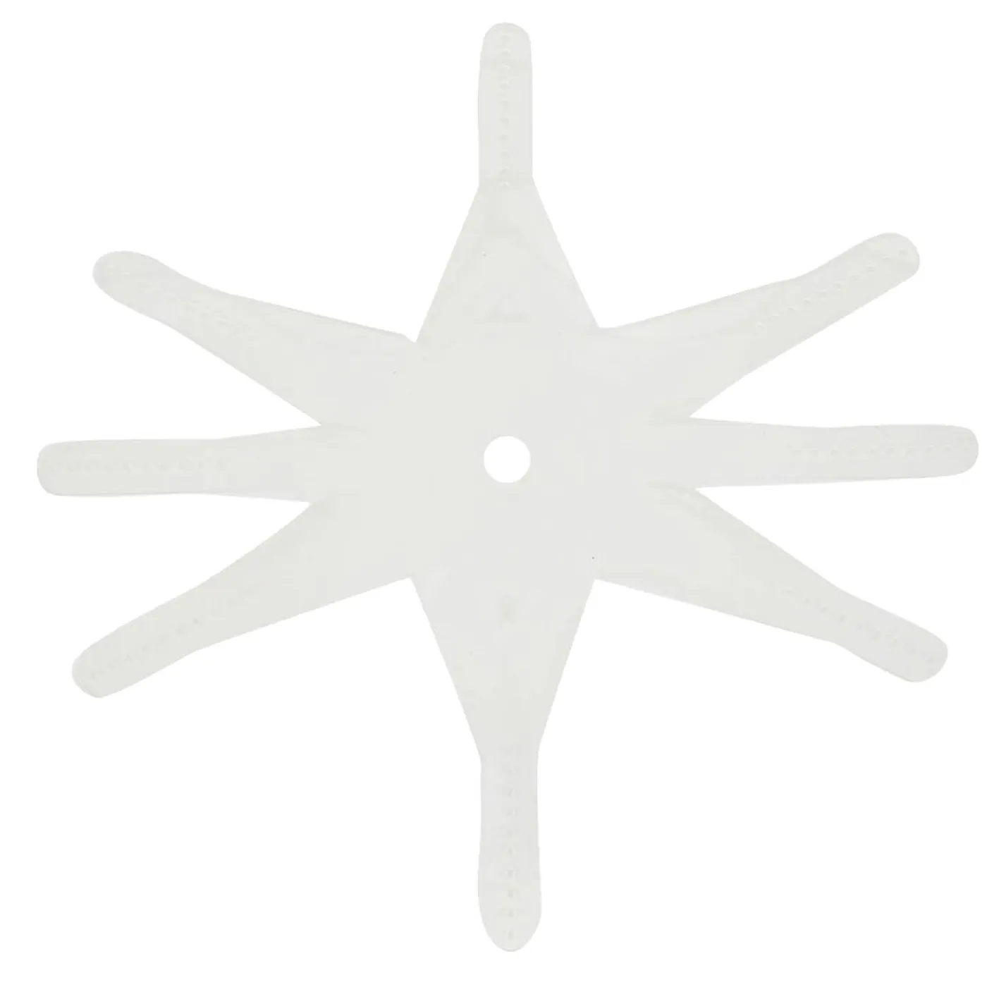 2. Two of the “fins” have a triangle cut out. These attach to the square (side) rings on your turnout halter. Three fins will connect to the nose band, one in the center, the other two fall naturally to the sides of center. Three fins will connect to the chin band; one in the center, two naturally to the sides of the center.