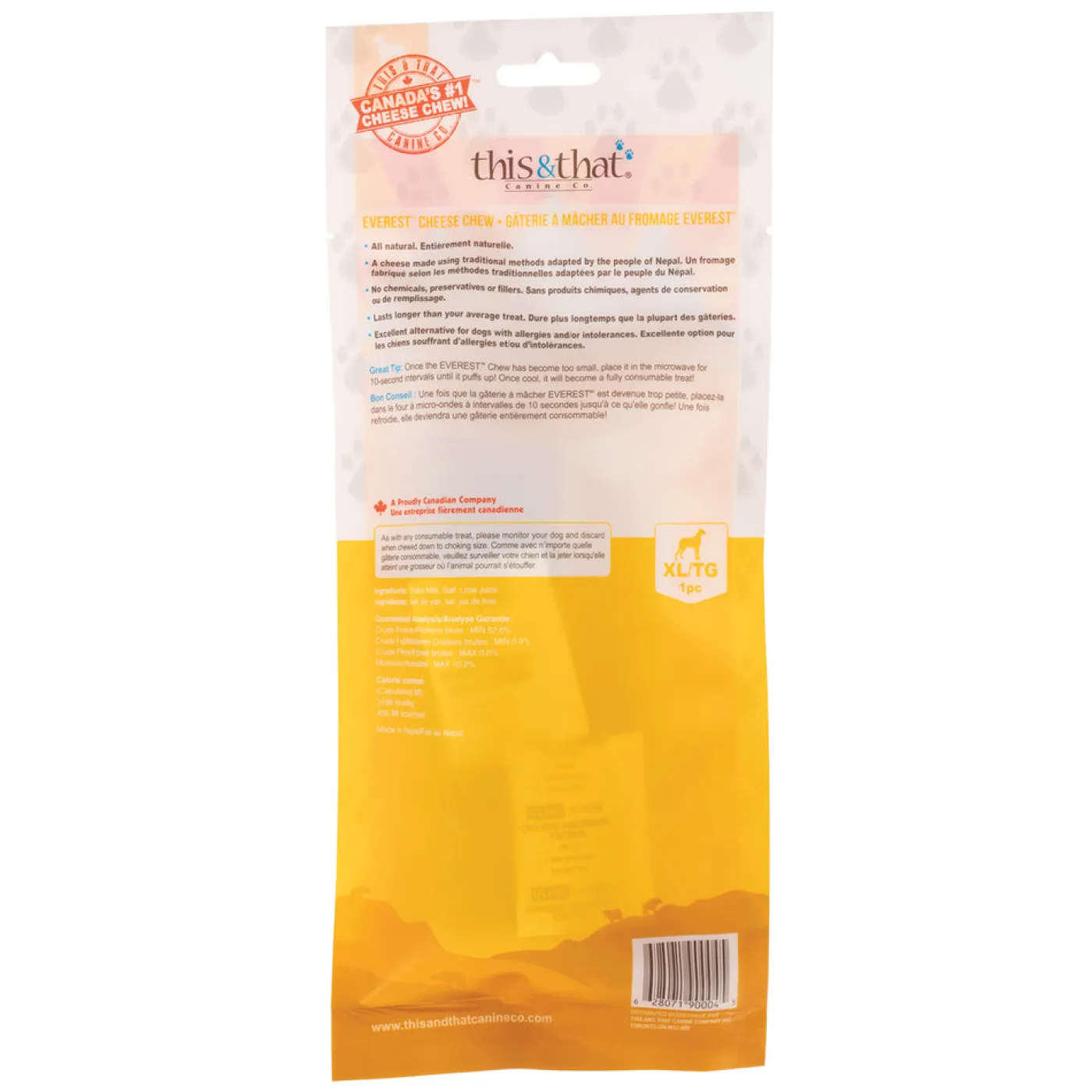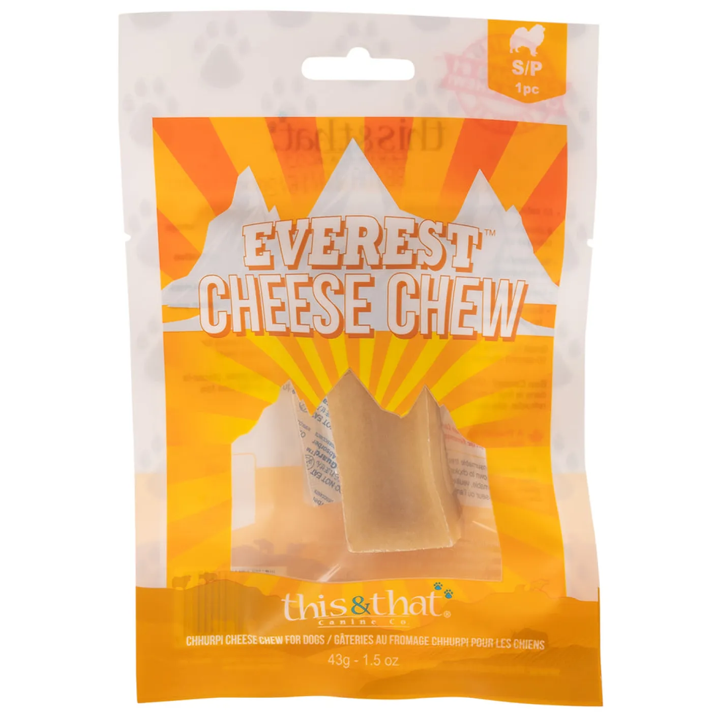 This & That Everest Chews are made with a centuries old cheese recipe (Chhurpi) from Nepal, and is one of the most flavourful and enjoyable chews on the market. Made by hand by family farmers practicing their traditional ways. Each chew is dried over a fire for two days high on the Himalayan Mountains. This chew is the perfect, tasty challenge to keep your pup busy for hours. 100% natural with three simple ingredients. Made of entirely novel proteins, this is the perfect chew for dogs with allergies or sensitivities. Each chew has three times the Omega Fatty Acids than cheddar cheese. Virtually lactose free and may be suitable for lactose-intolerant dogs. Contain no chemicals, preservatives or fillers. Fair trade. A fun tip – microwave the last bit for a delicious and crunchy Everest Cheese Puff!