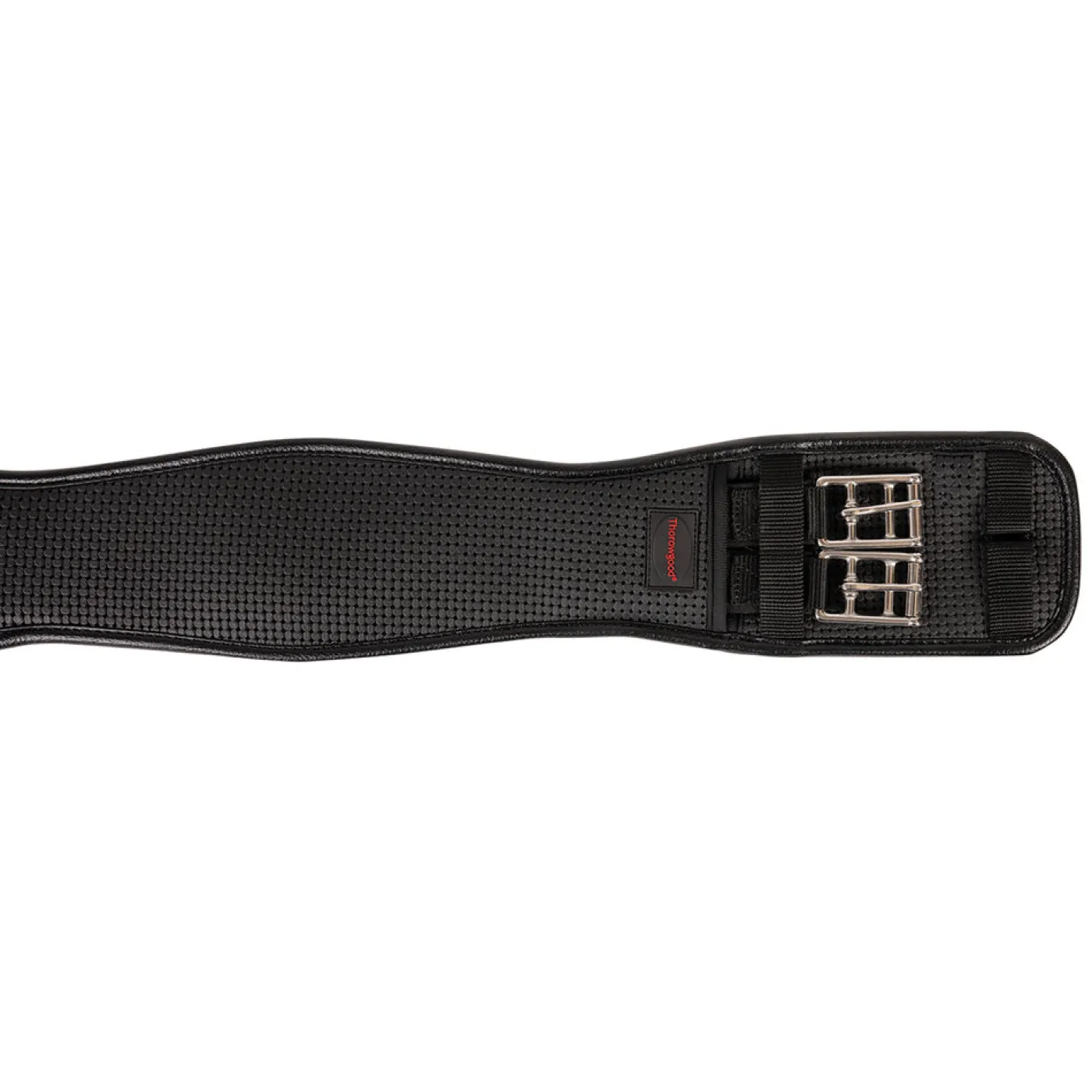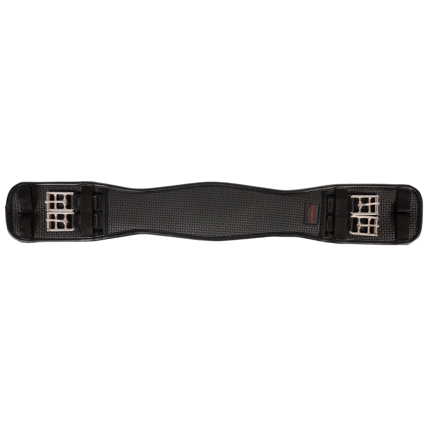 Thorowgood’s award-winning Airoform Girth in a dressage style! This girth is gently curved for a snug, contoured fit. The stay-soft Airoform cushioning really does stay that way no matter how much use it gets, and eliminates any pinching of the sensitive skin behind the elbows. Plus, this girth features a new double-layer stitching system for your peace of mind. A new centre-stitched keeper at each end holds longer girth straps neatly in place. Textured for airflow with elasticated inserts that make tacking up easier. Stainless steel roller buckles at each end. Best of all, there is no need for oil or soap when cleaning – simply sponge clean!