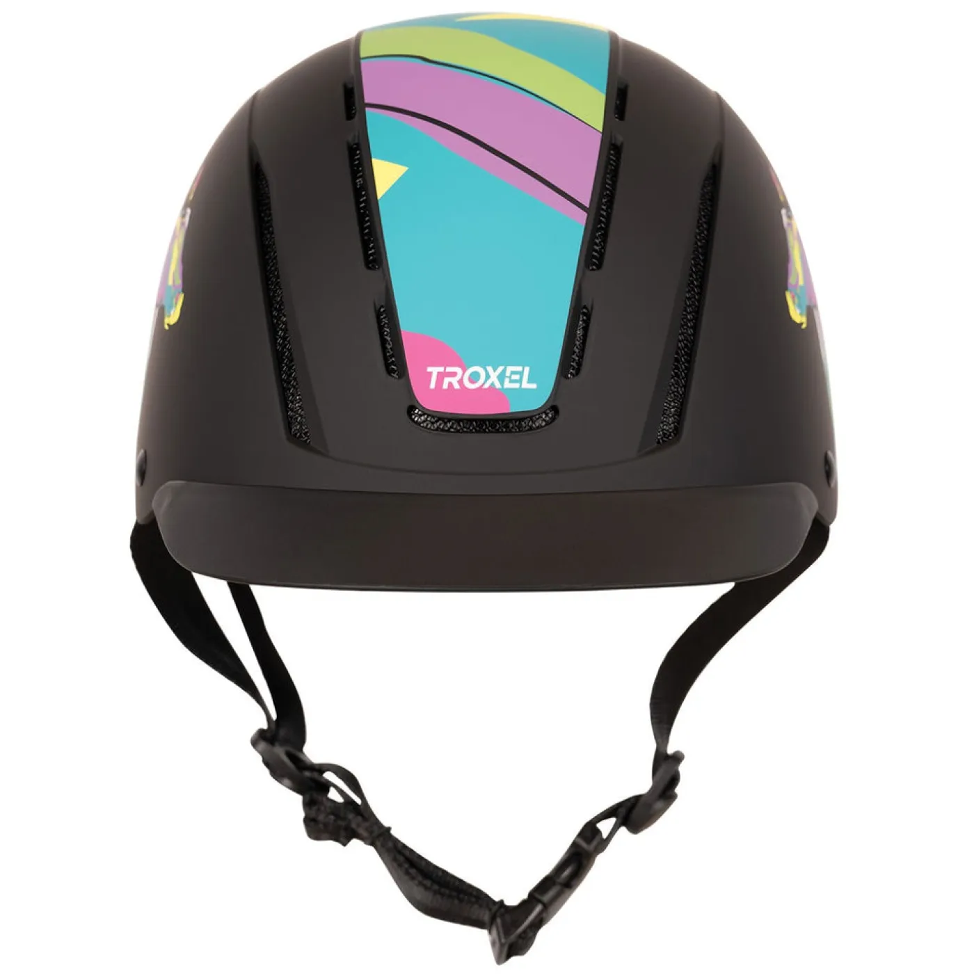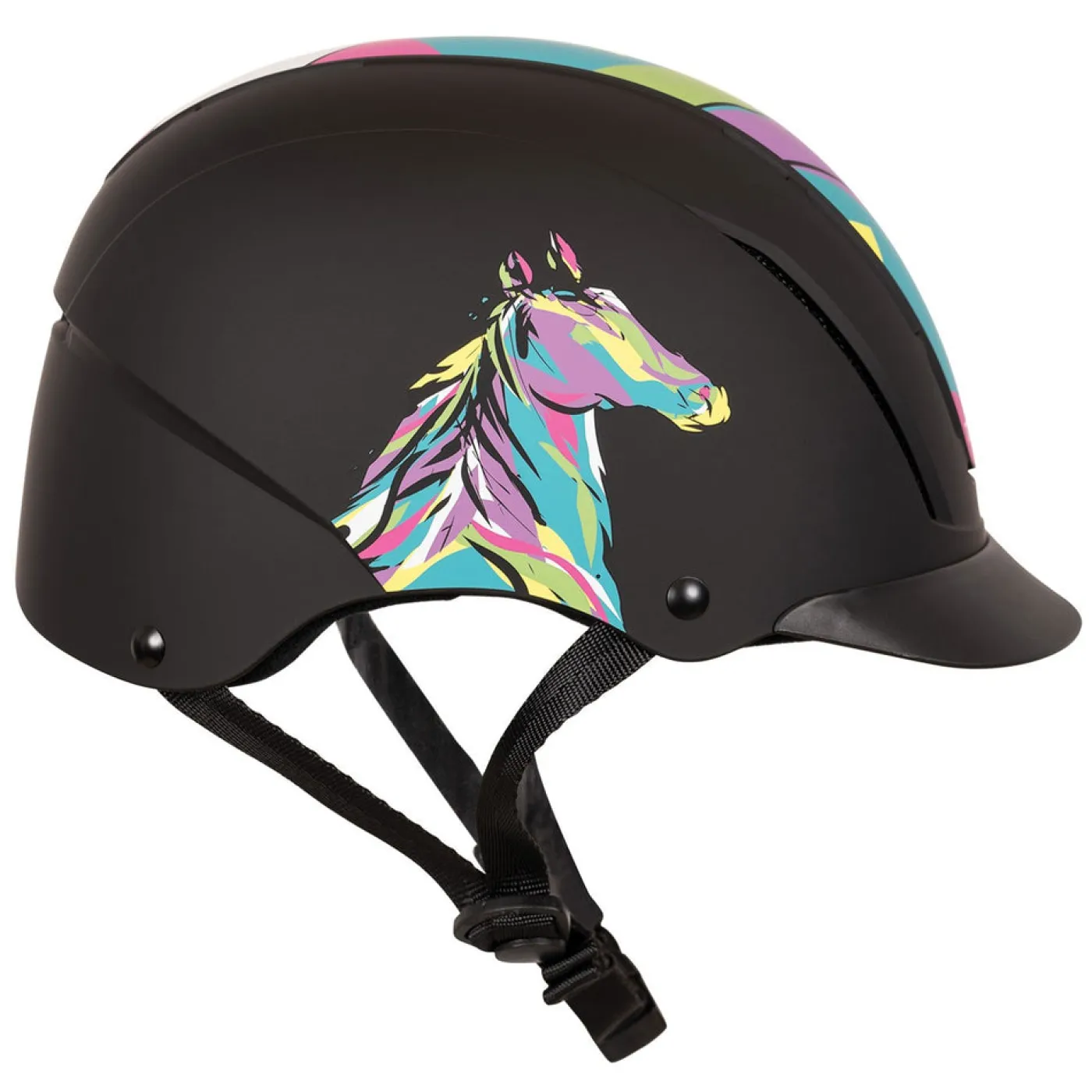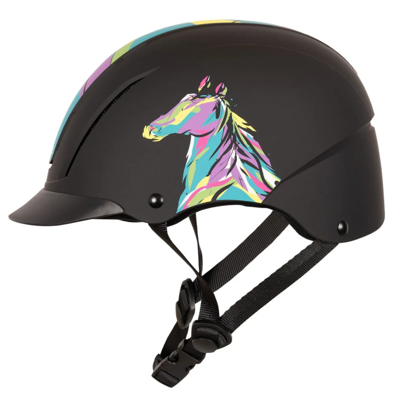 The redesigned Spirit offers a deeper, full coverage fit for incredible comfort. Featuring a FlexVisor™ that won’t shatter into sharp pieces in the event of a fall. Riders love its new low-profile design and DialFit™ technology that work together to create a comfortable fit for a variety of head shapes. The DialFit™ technology allows for quick and precise adjustment with one hand and mesh covered vents offer maximum airflow. Complete with a removable and washable FlipFold™ headliner that provides adjustment to the helmet’s width to further accommodate different head shapes. With fun, fashionable graphics and colours, the Troxel Spirit is a great option for riders looking to match their horse’s gear or boldly show off their sense of style!