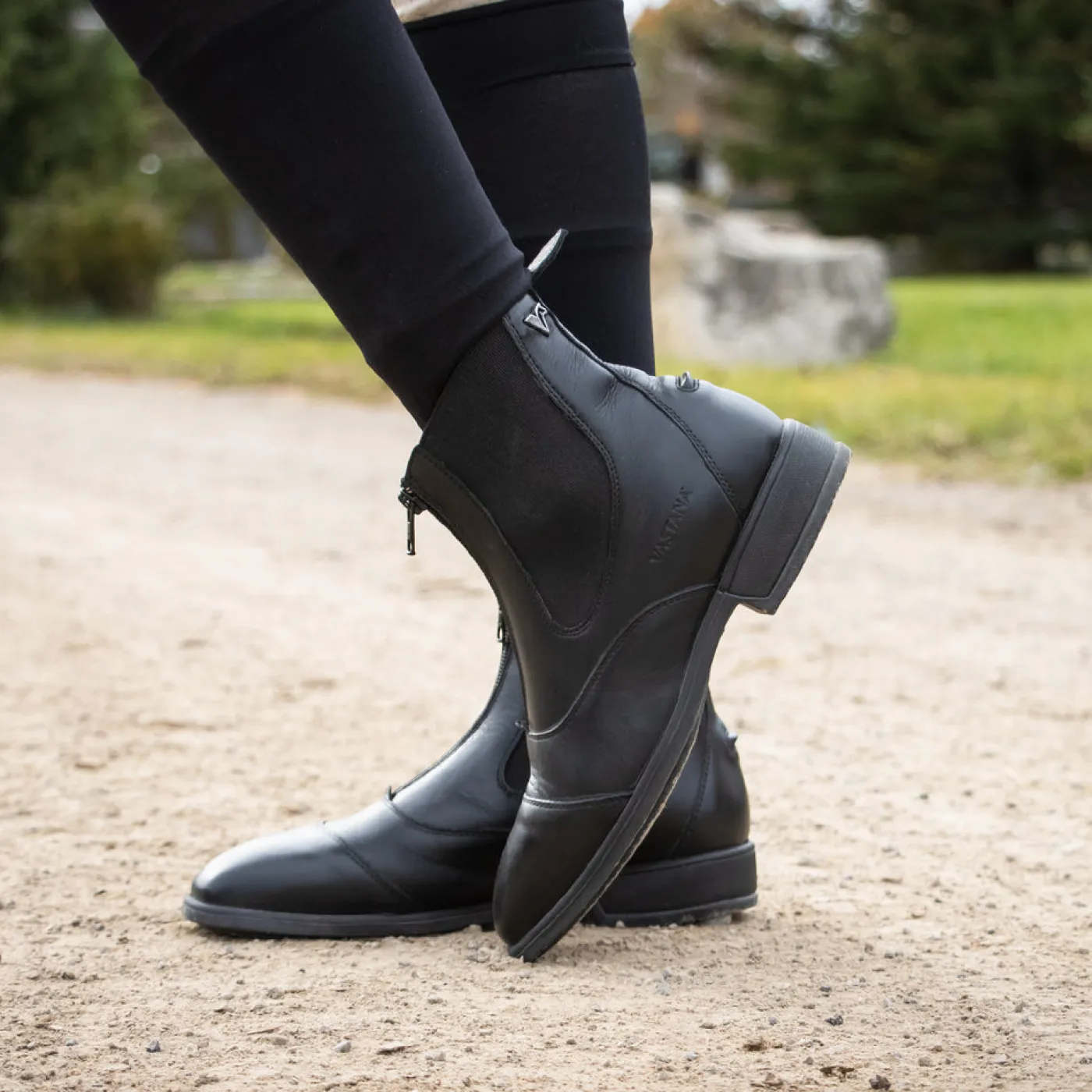 The Vastana Stivali Mira Zip Paddock Boots are made from the finest Italian leather, carefully crafted in Portugal and exclusive to Greenhawk. Crafted with a zip front and elastic panels for easy on and off while still providing a custom-like fit. Complete with extra padding at the ankles and an absorbent Impact System outsole for all day comfort.