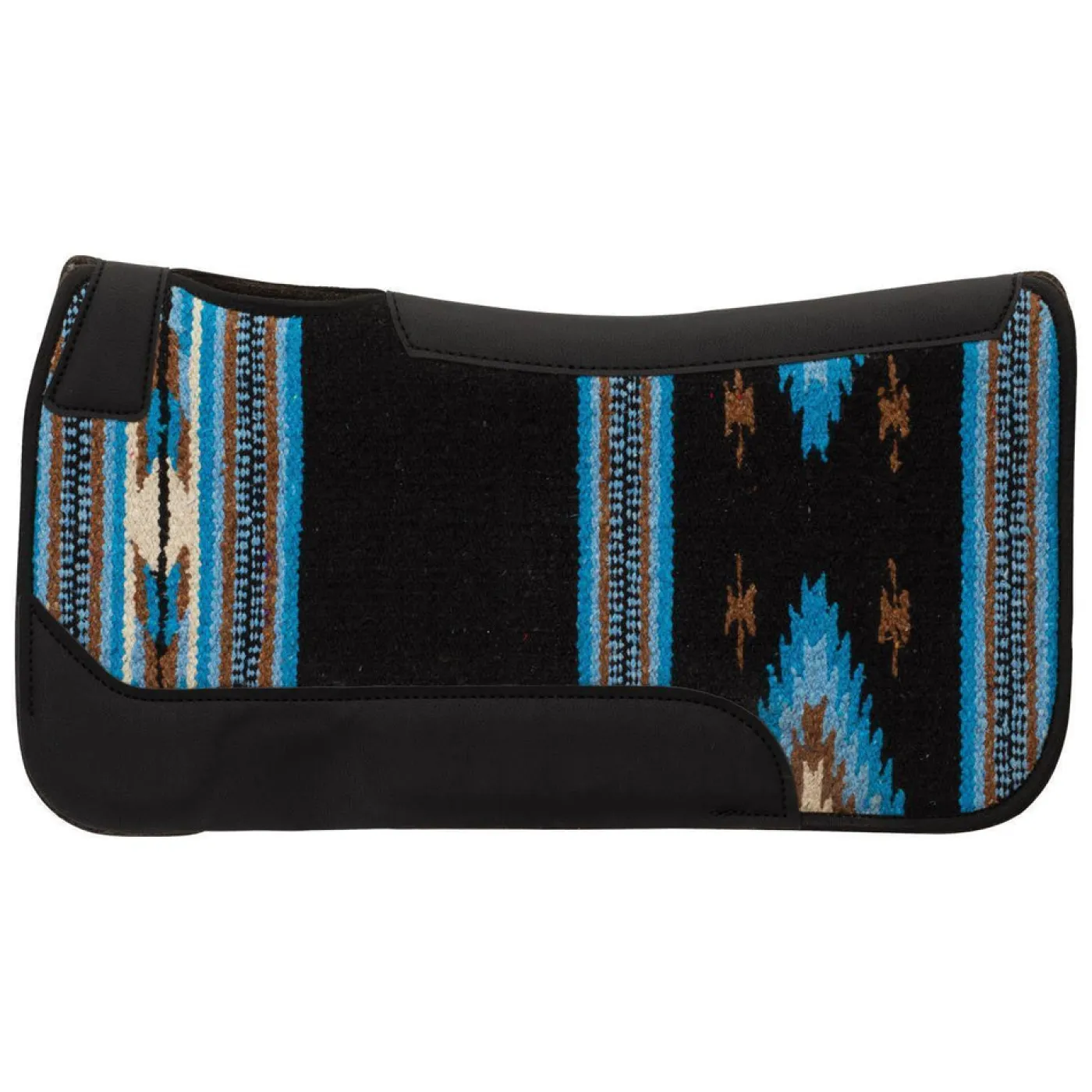 Contoured saddle pad features a single weave topper design inspired by beautiful southwest-style rugs. A ¾” wool blend felt liner helps absorb shock and wicks moisture away from your horse. 31″ x 32″.