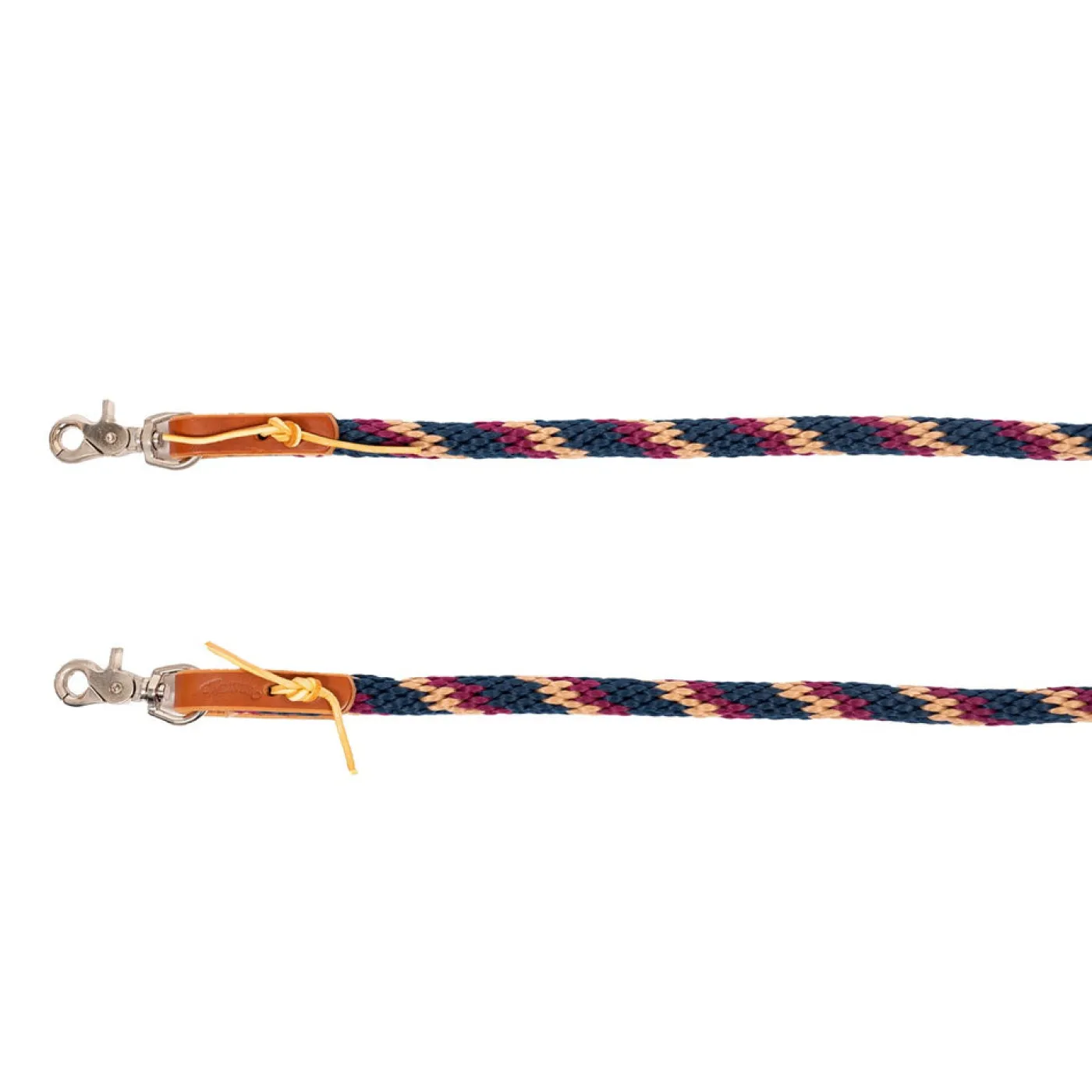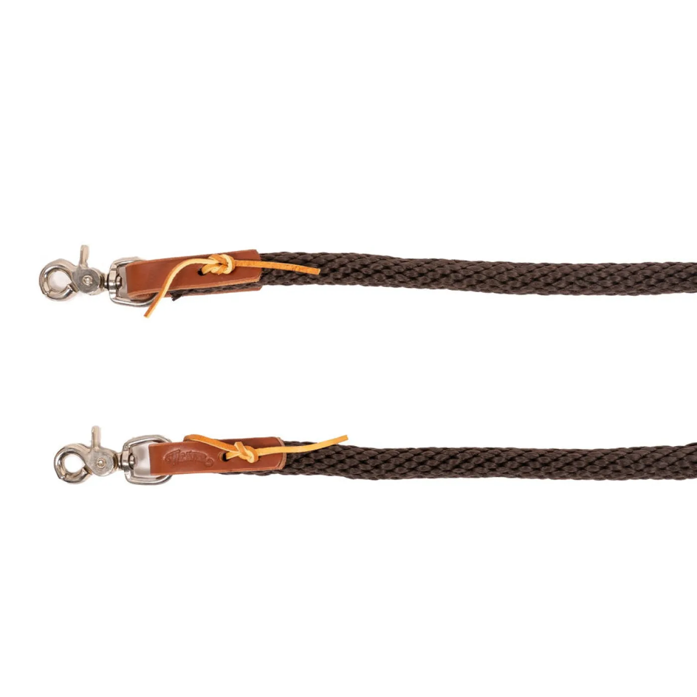 The Weaver Poly Roper Reins features quality 5/8 in. poly rope, harness leather water loops at both ends with brown latigo leather laces and nickel plated scissor snaps. Designed and styled with the quality and craftsmanship that you have come to expect from the Weaver brand. 5/8 in. x 8 ft. (16 mm x 2.4 m)