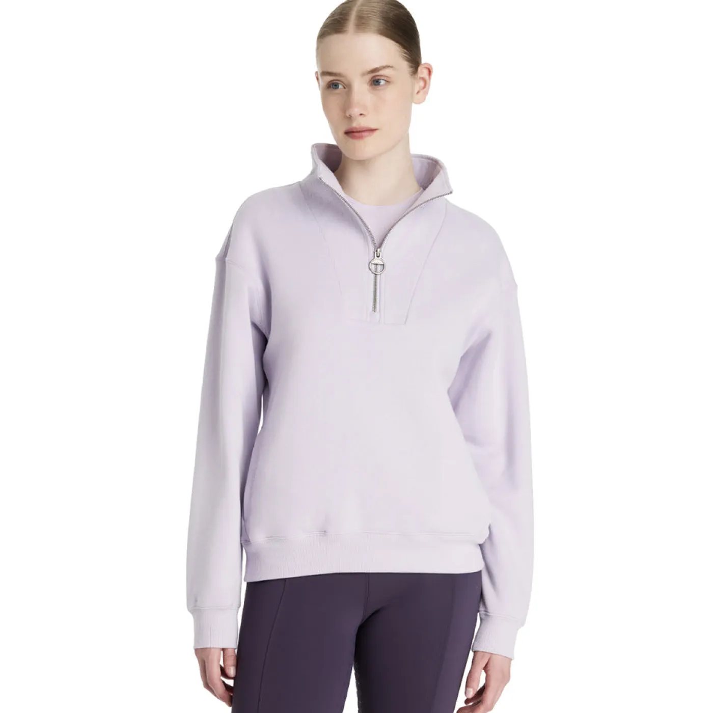 Your new go to relaxed-fit quarter zip sweater! The ribbed quarter zip neck makes for easy outfit changes, while the LeMieux embroidered logo on the back of the neck stands out from the crowd. Drop shoulder styling is easy and comfortable to wear, with added coziness from the soft carbon brushback fleece material. The ribbed hem and cuffs keep the cold at bay. Easy-access side-entry pockets are ideal for keys, cold hands and treats. The perfect layer for any season!