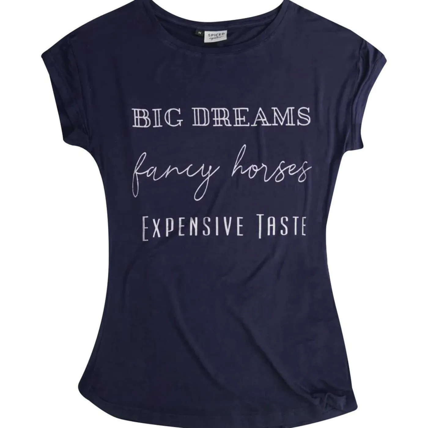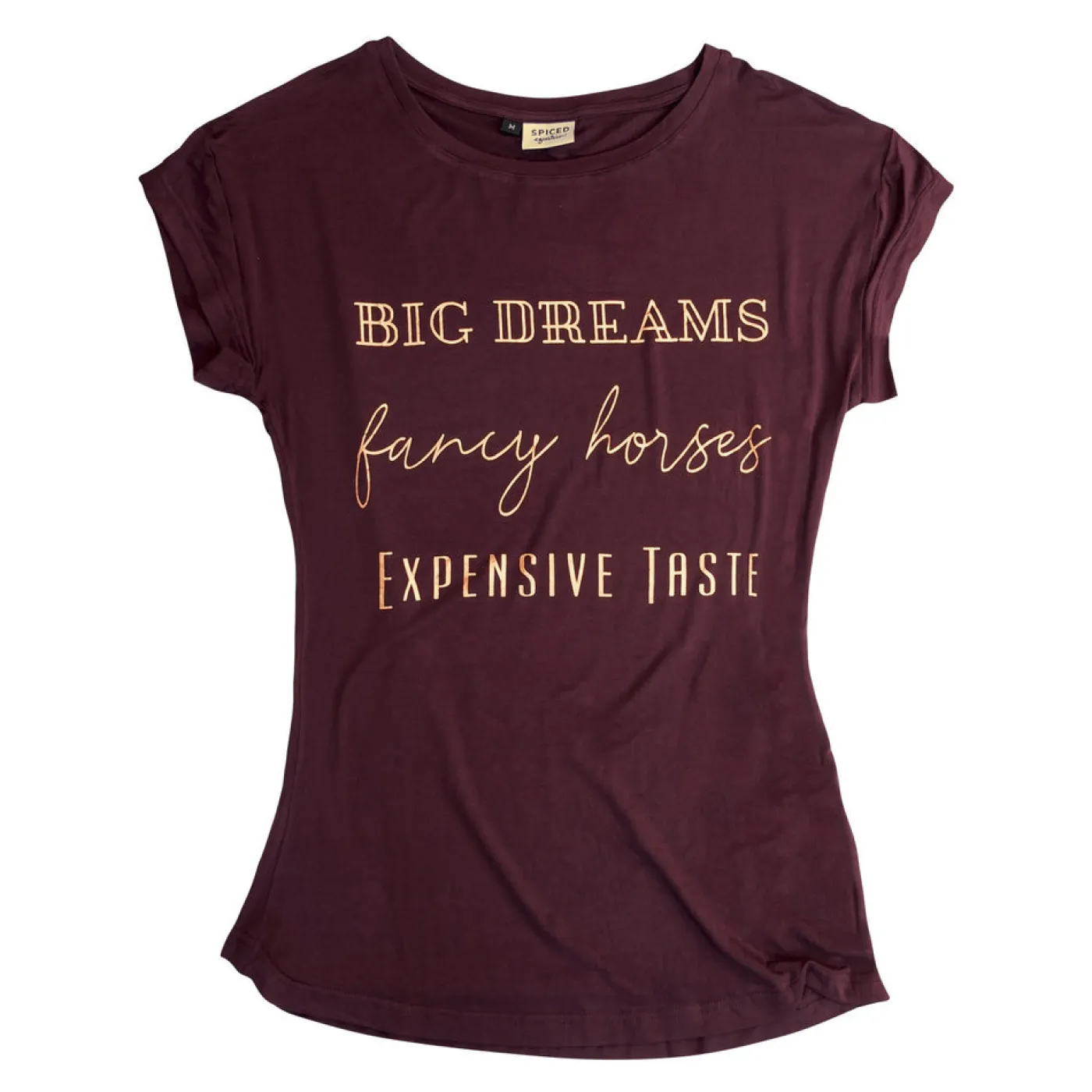 It’s an equestrian mantra – Big Dreams, Fancy Horses, Expensive Taste. This soft and lightweight scoop neck tee features rose gold foil lettering and a flattering, feminine fit.
