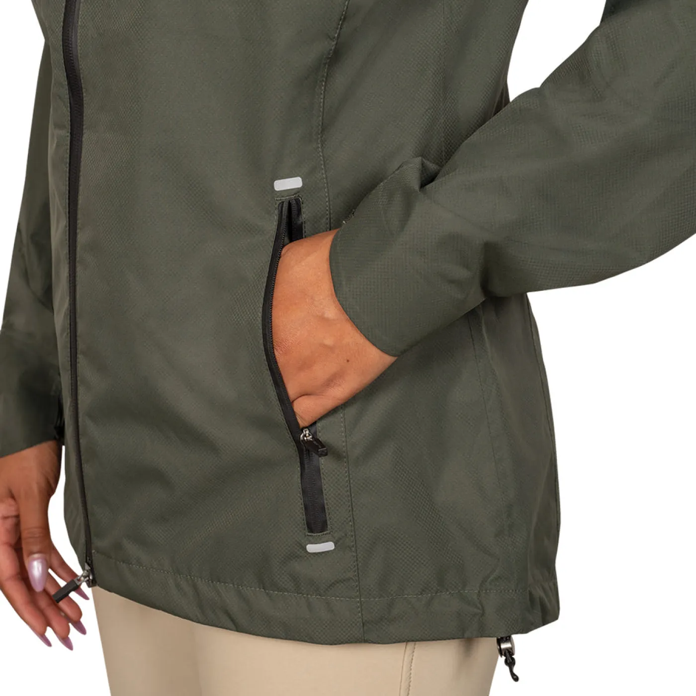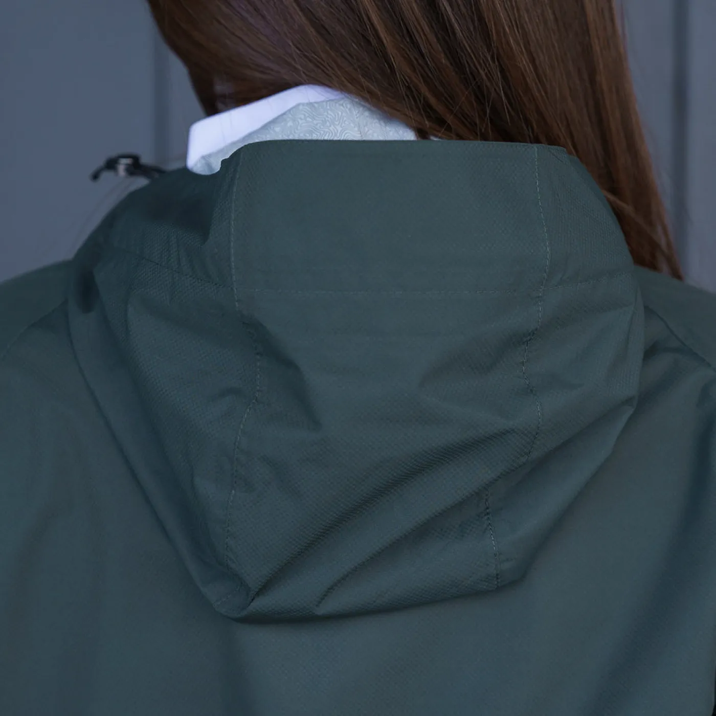 Suitable for everyday wear around the barn or while ringside at the showgrounds with fully taped seams to keep you comfortable and dry all rainy day long. Offers wind resistant zippers at the armpits to provide ventilation while helping to regulate your body temperature. The unique cuff design provides a snug fit and the back ensures added coverage while moving. Complete with an adjustable hood.