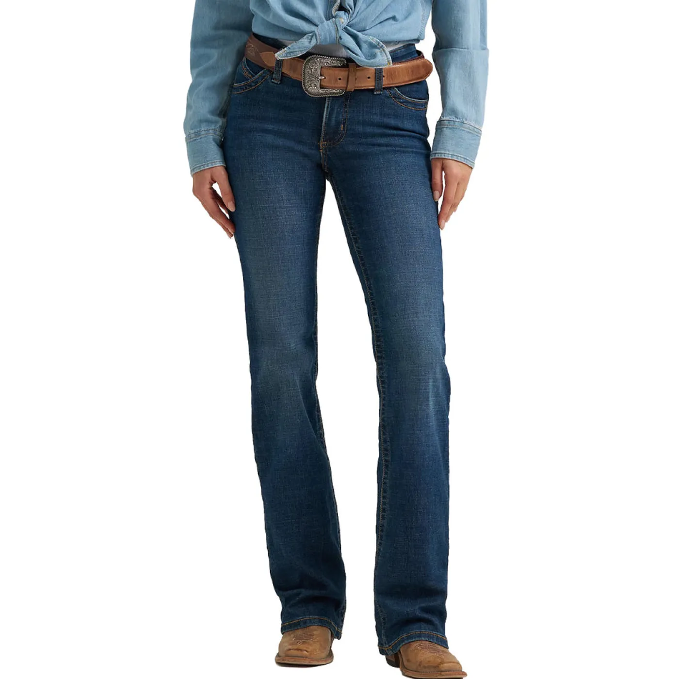 Made for women who were made for riding. A classic mid-rise fit is enhanced with a slightly pitched waistband that sits lower in the front and higher in the back for maximum comfort and coverage in the saddle, complete with Wrangler’s signature No Gap Waistband. The ultra-flattering silhouette is fitted through the seat and thigh to complement your curves, and is finished with a riding bootcut leg opening that creates the perfect stack. Plus, thanks to fabric with great stretch recovery, it holds its shape throughout the day whether you’re on or off your horse. Whether in the saddle or in the city, the Willow will have you feeling confident and up for every adventure.