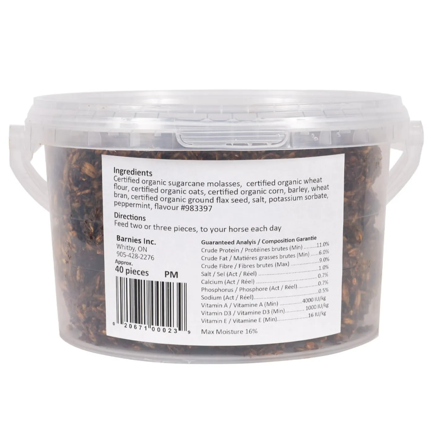 Canadian owned and operated, Barnies treats are the perfect reward for your horse. Contain molasses, rolled oats, corn, bran, ground flax feed, and a small amount of flour and salt. Complete with a peppermint taste that your horse will love.