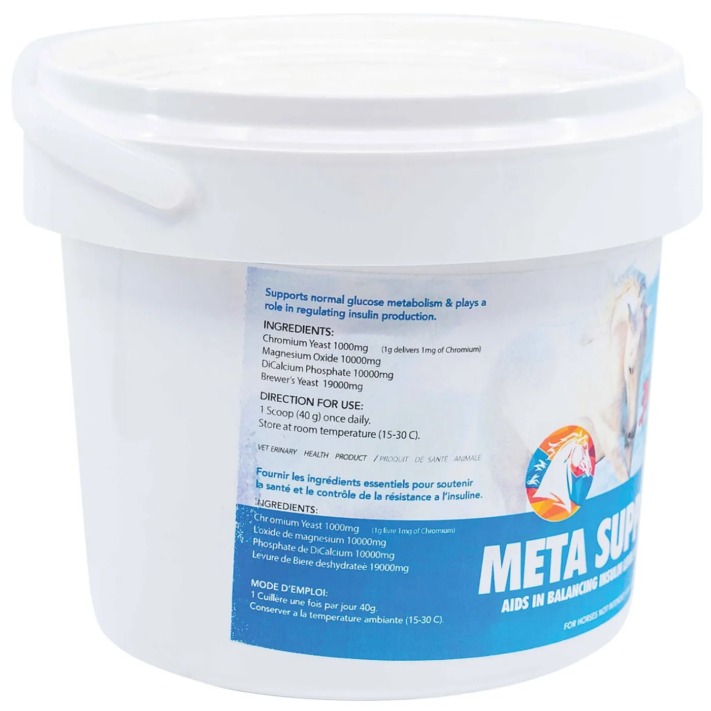 MetaSupport can help maintain healthy insulin levels in horses. Contains Chromium Yeast, Magnesium Oxide, DiCalcium Phosphate, and Brewer’s Yeast.