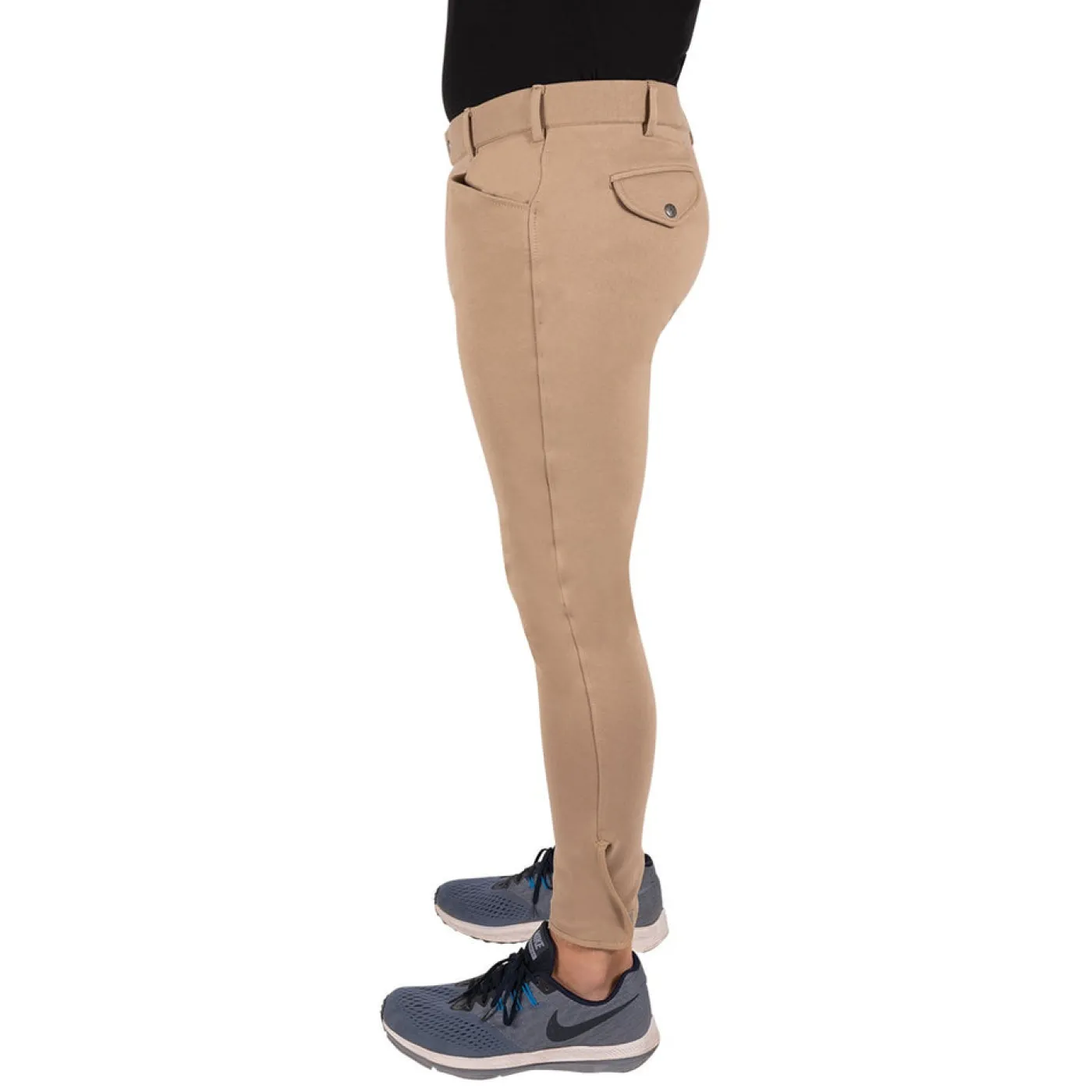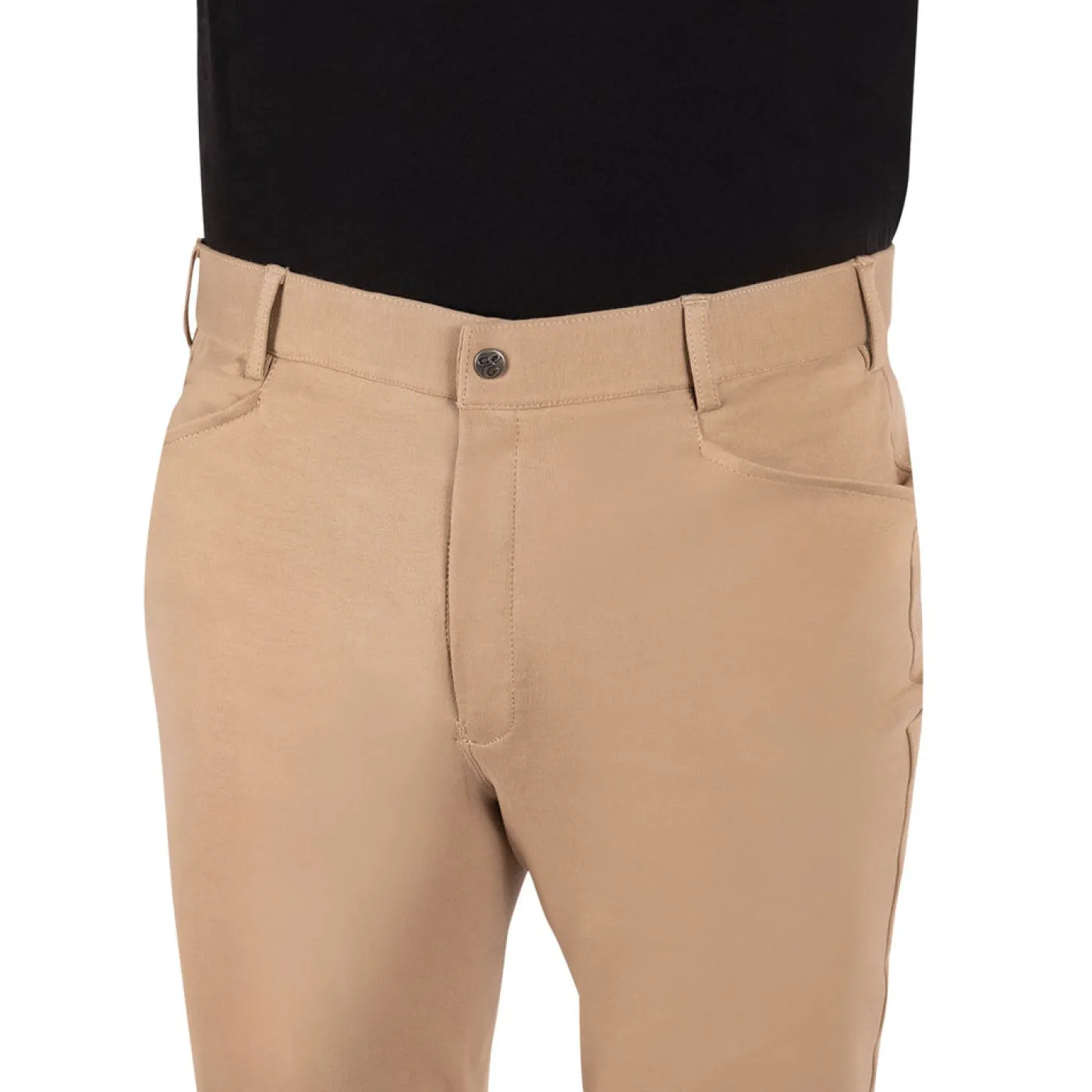 The Black Label Men’s Breech is a high-performance, front-zip schooling breech thoughtfully designed with function in mind. Styled in a traditional men’s relaxed fit and featuring performance cotton fabric to provide superb breathability and stretch for exceptional comfort. Featuring Alos leather knee patches, Velcro ankle closures and sleekly trimmed front and back pockets. Complete with fully finished seams, reinforced belt loops and high tensile stitching for optimal durability. Inseam measures 67-69cm.