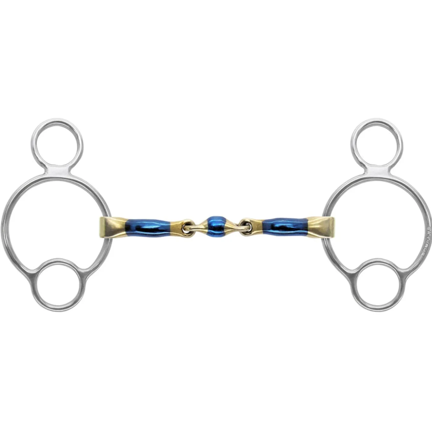 An innovative, ergonomically shaped bit designed to provide ultimate comfort in the horse’s mouth. The Bomber Lock Up bit will not fold downwards or backwards which will help alleviate the nut-cracker sensation of a regular snaffle. Bomber bits are an ideal choice for horses with sensitive mouths as the curved shape of the bit is designed to reduce pressure on the horse’s tongue and bars and can help encourage salivation. Bomber Bits are easily recognizable with their unique blue sweet iron mouth and cutting-edge design. A great choice when encouraging a more supple, soft, and relaxed ride.