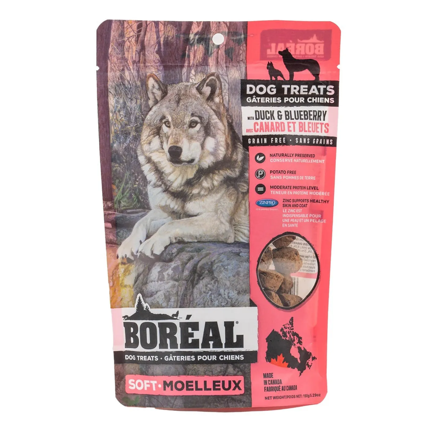 Made in Canada with all natural ingredients, Boreal Duck and Blueberry treats are cooked using a system that helps preserve the particularly fragile nutrients including vitamins, antioxidants, and Omega 3 and 6 Essential Fatty Acids.