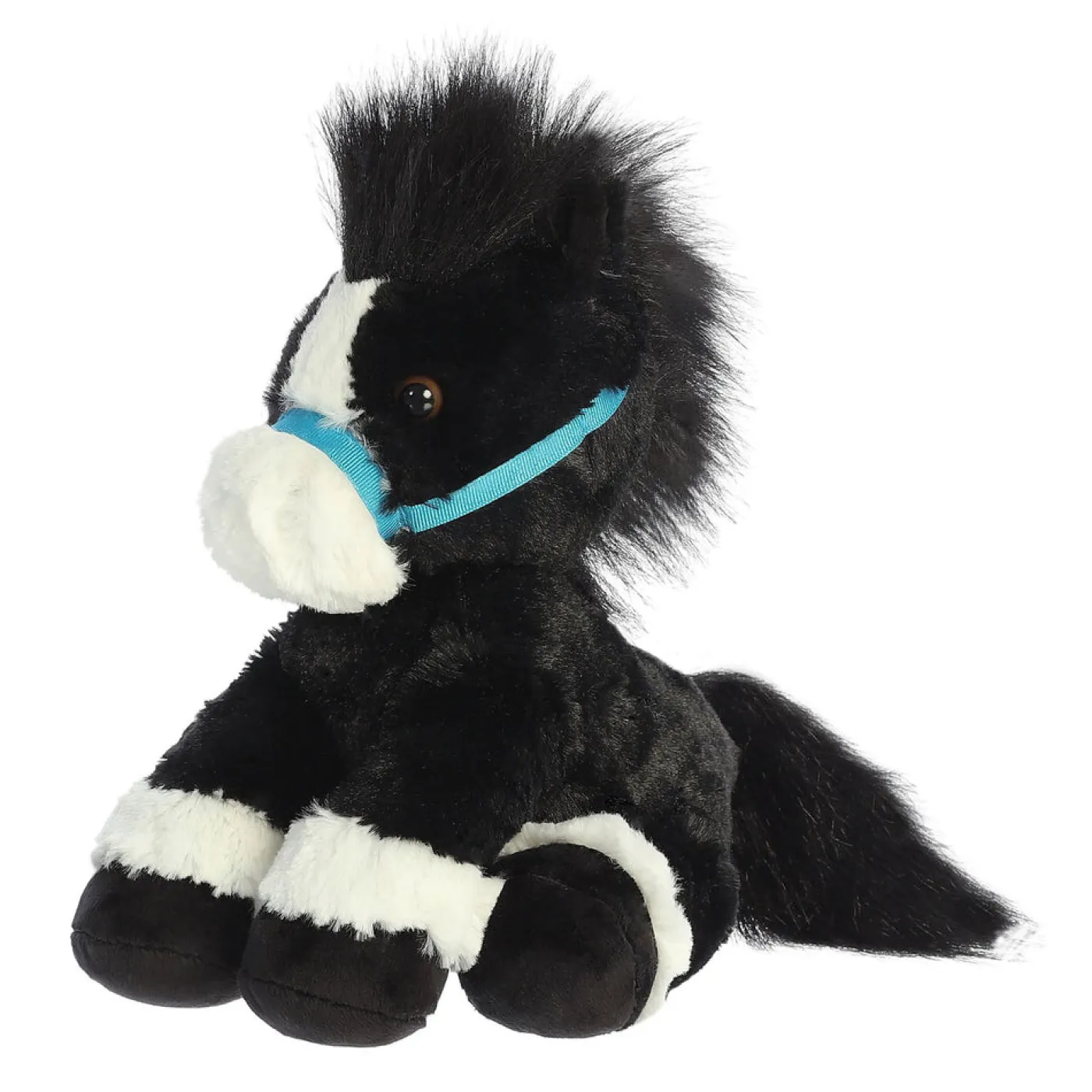 Looking for a cute and cuddly companion? Breyer’s Bridle Buddies are super soft and sweet. Features a black coat with black hooves and white accents around its legs. Complete with a blue bridle and has “Breyer” embroidered on the bottom of its foot.
