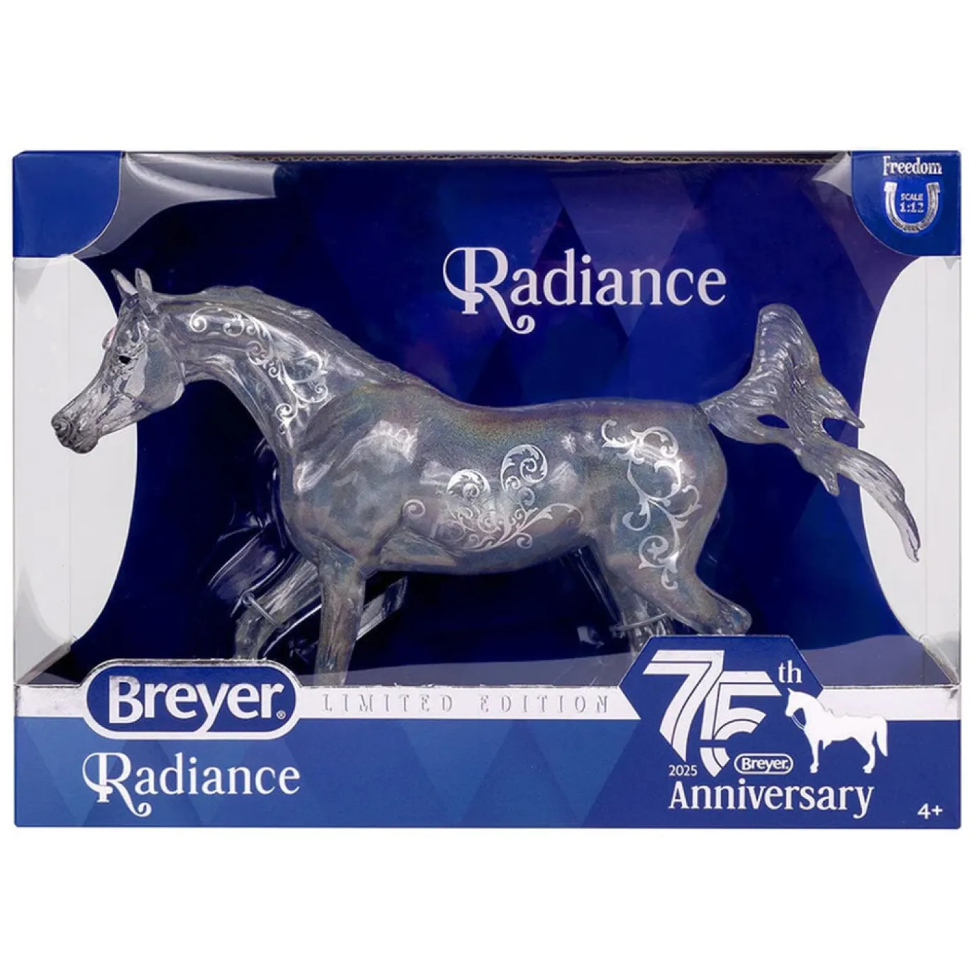 Since 1950, Breyer has been celebrating the spirit of the horse through exquisite, lifelike sculptures and unrivaled attention to detail. Radiance represents 75 years of Breyer’s equine excellence. This striking clearware Arabian mare sparkles in an array of prismatic colours and is adorned with a glittering teardrop-shaped rhinestone, fully embodying the sparkle and majesty of the diamond. Arabian horses have plenty in common with diamonds – they are both beautiful objects of desire that have captivated humankind for thousands of years. Radiance is a stunning keepsake of this milestone anniversary that will add a bit of sparkle to your home for years to come!