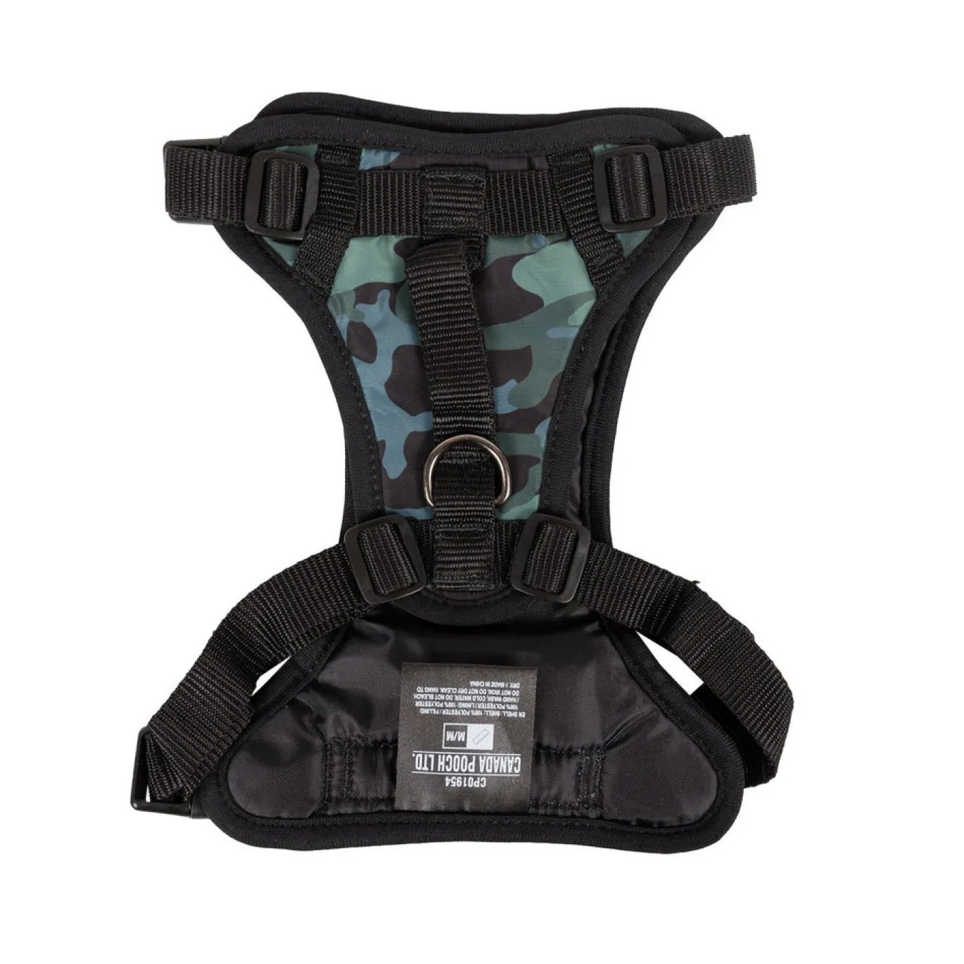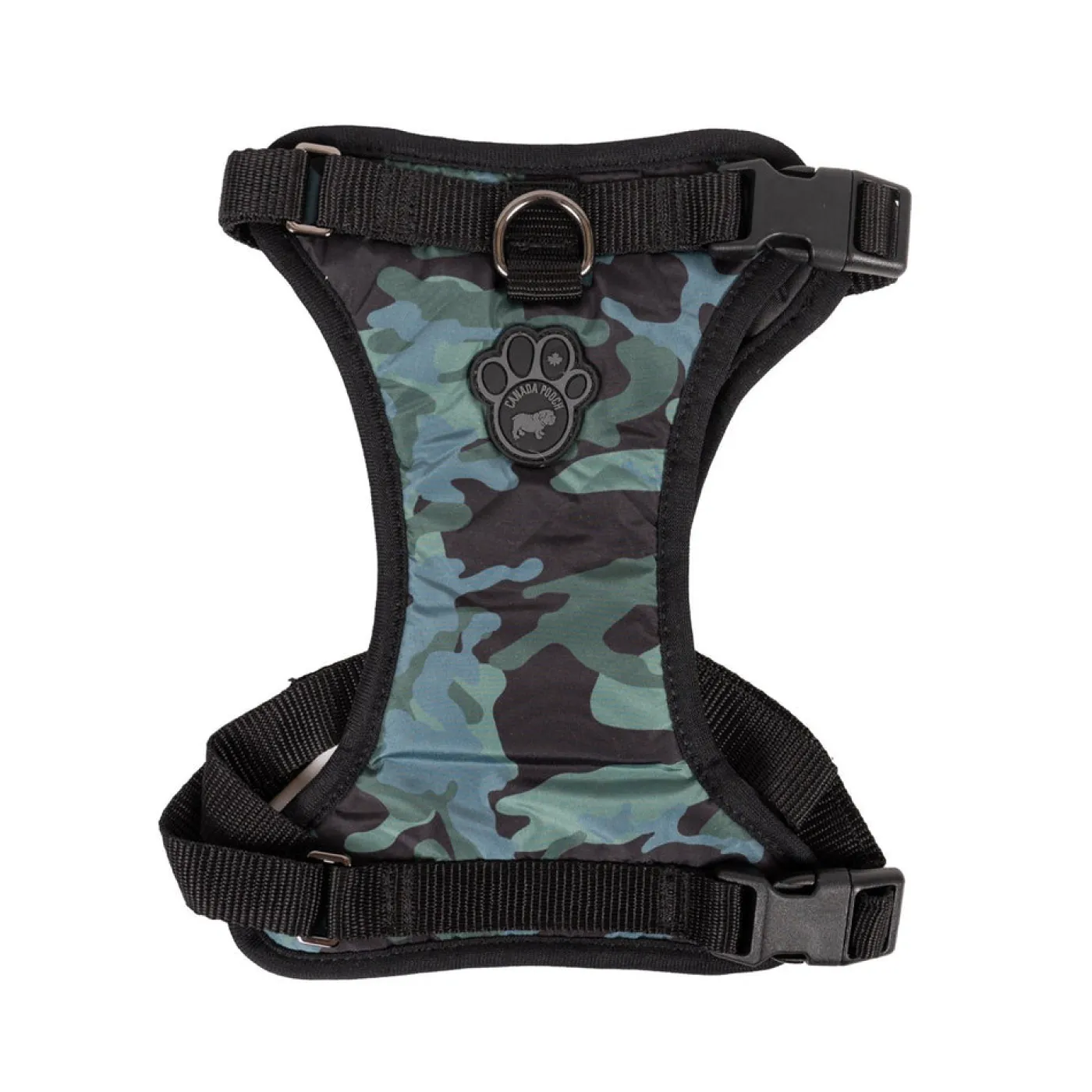 The Canada Pooch Everything Dog Harness is a comfortable and functional no-pull harness. The front D-ring attachment creates a no pull walking experience with an optional rear D-ring. The water-resistant exterior will keep your pup warm when they’re in the great outdoors. Adjustable and customizable fit and the neck and girth. Includes a seatbelt loop and a functional assistance handle.