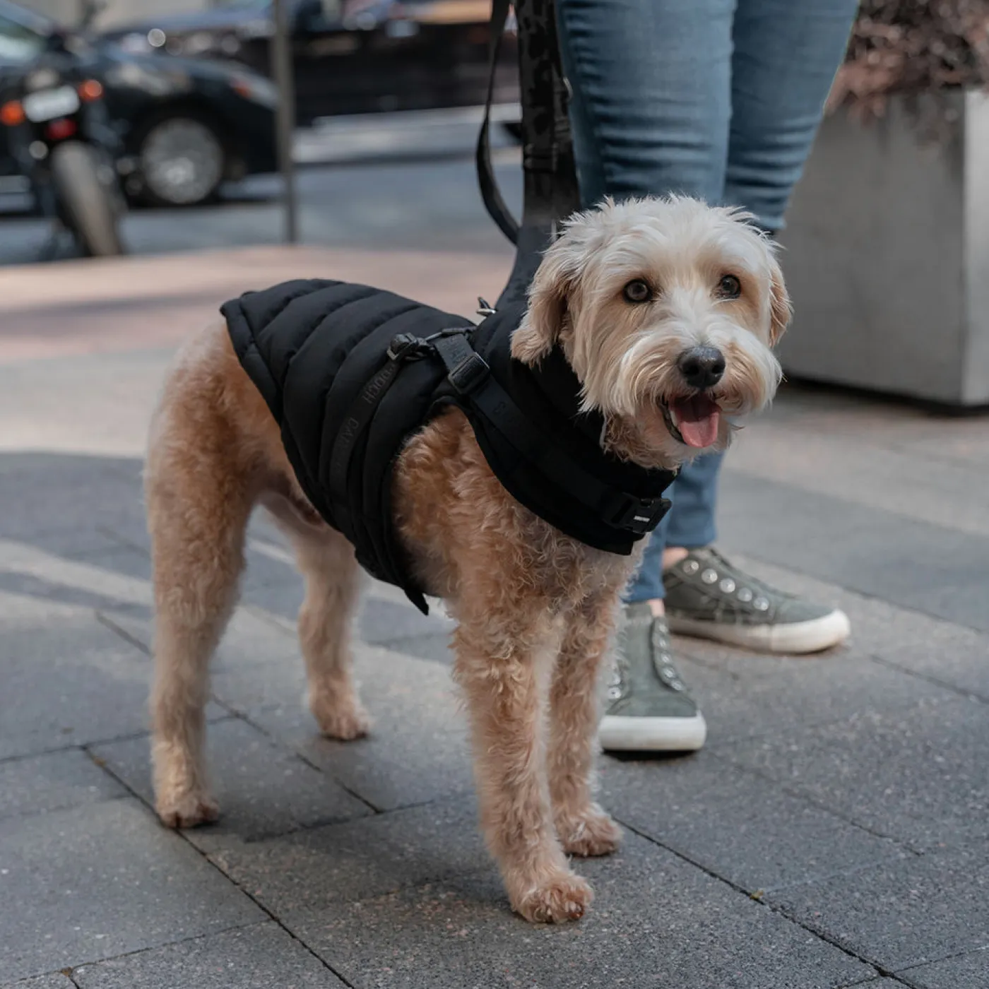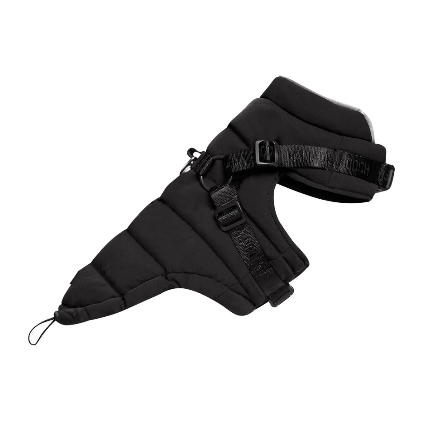 The Canada Pooch Harness Puffer offers a stylish 2-in-1 jacket with a built in harness for comfort and control on winter walks. Features a double buckle Velcro closure with a water-resistant 4-way stretch exterior fabric. Complete with faux down insulation, and non-shed stretch lining.