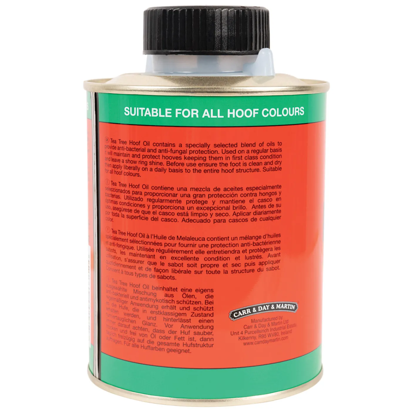 - Rich, translucent oil, suitable for all hoof colours