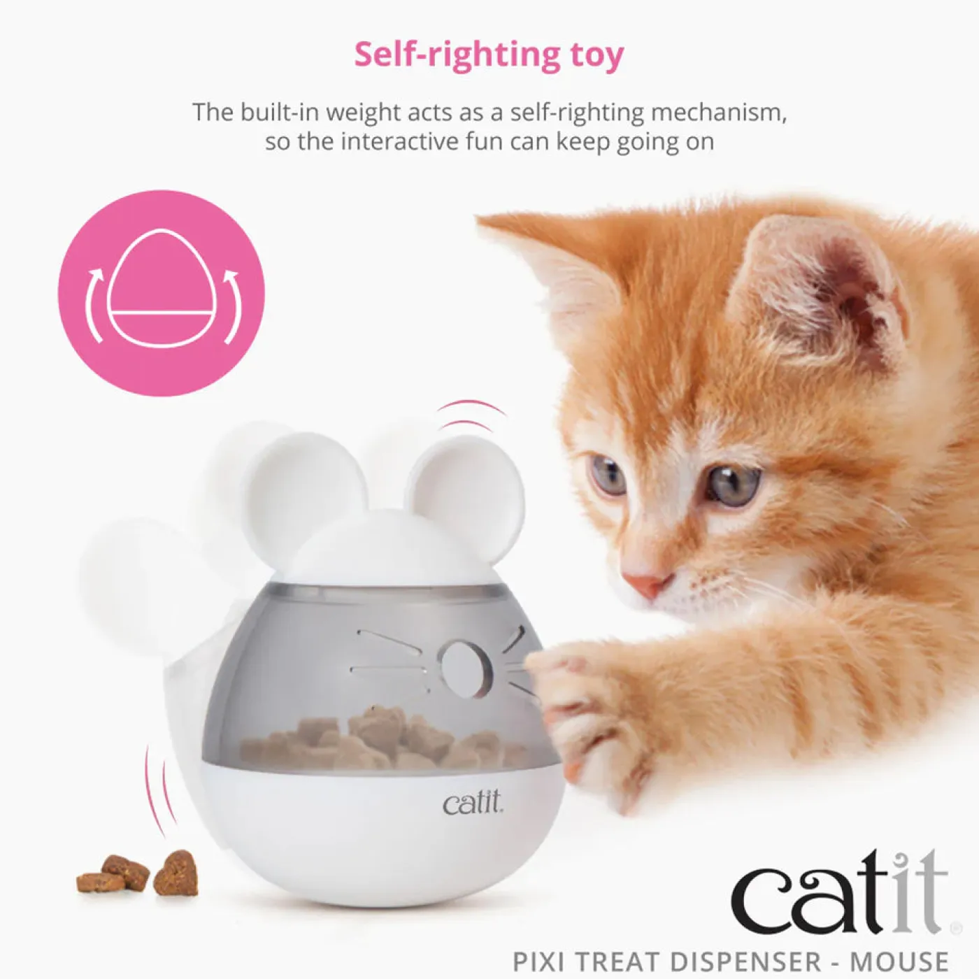 At just the right size for playful swatting and pouncing, the Catit Pixi Mouse Treat Dispenser is an adorable little treat toy that helps keep your cat entertained. The weighted bottom makes the toy wobble and return to its upright position as your cat paws and paws to get the treats out.