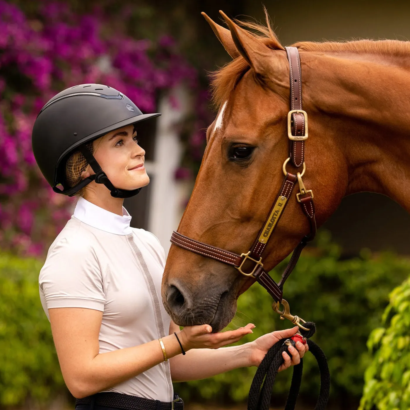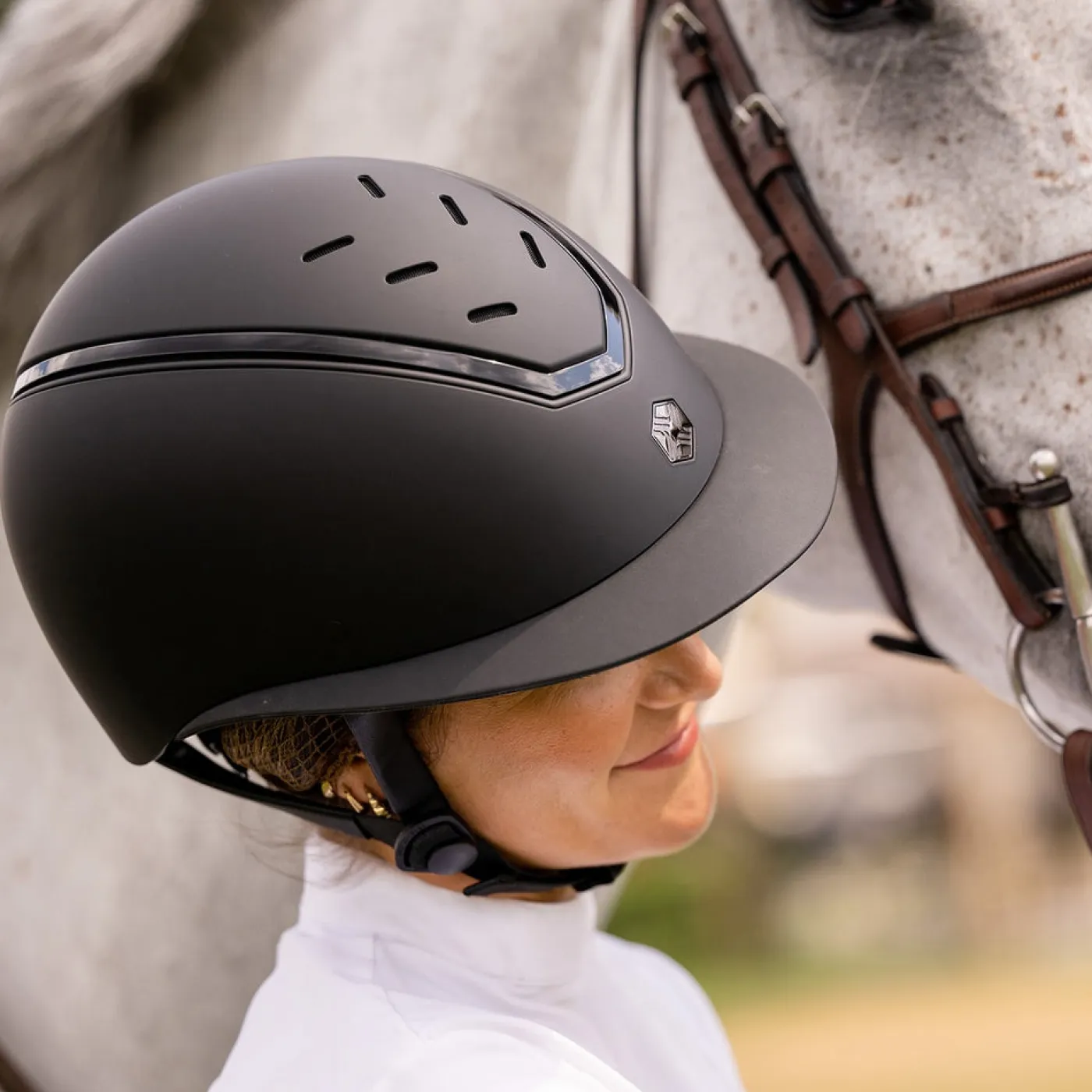 The Kylo from Charles Owen combines next level performance and equestrian style. The Kylo features an easy-to-fit adjustable dial system, and is lightweight and highly ventilated for maximum comfort. The removable, machine washable headband is easy to clean during the hot summer months. Complete with a fully adjustable, leather look harness with quick release buckle.