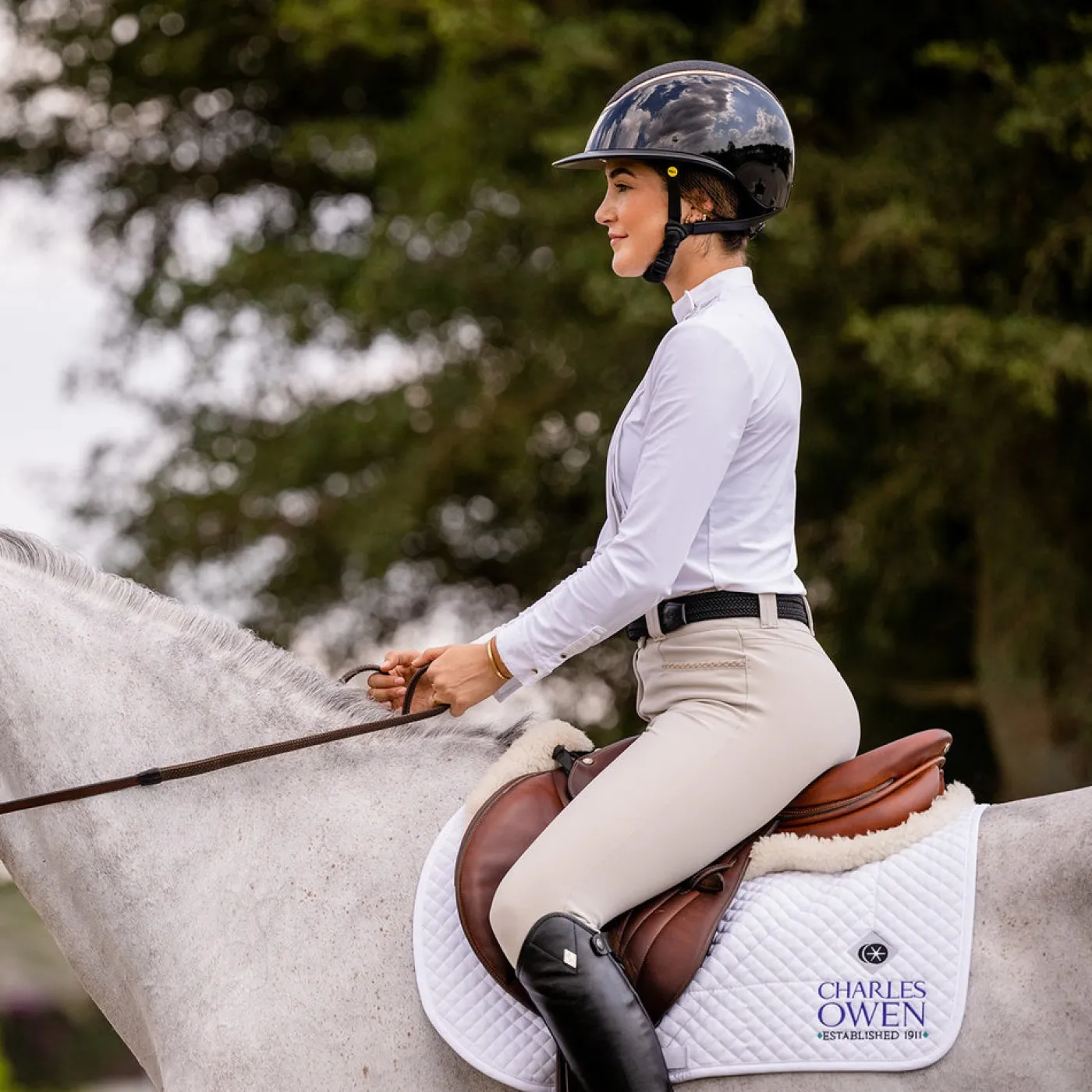 The Kylo from Charles Owen combines next level performance and equestrian style. The Kylo features an easy-to-fit adjustable dial system, and is lightweight and highly ventilated for maximum comfort. The removable, machine washable headband is easy to clean during the hot summer months. Complete with a fully adjustable, leather look harness with quick release buckle. Includes MIPS technology.