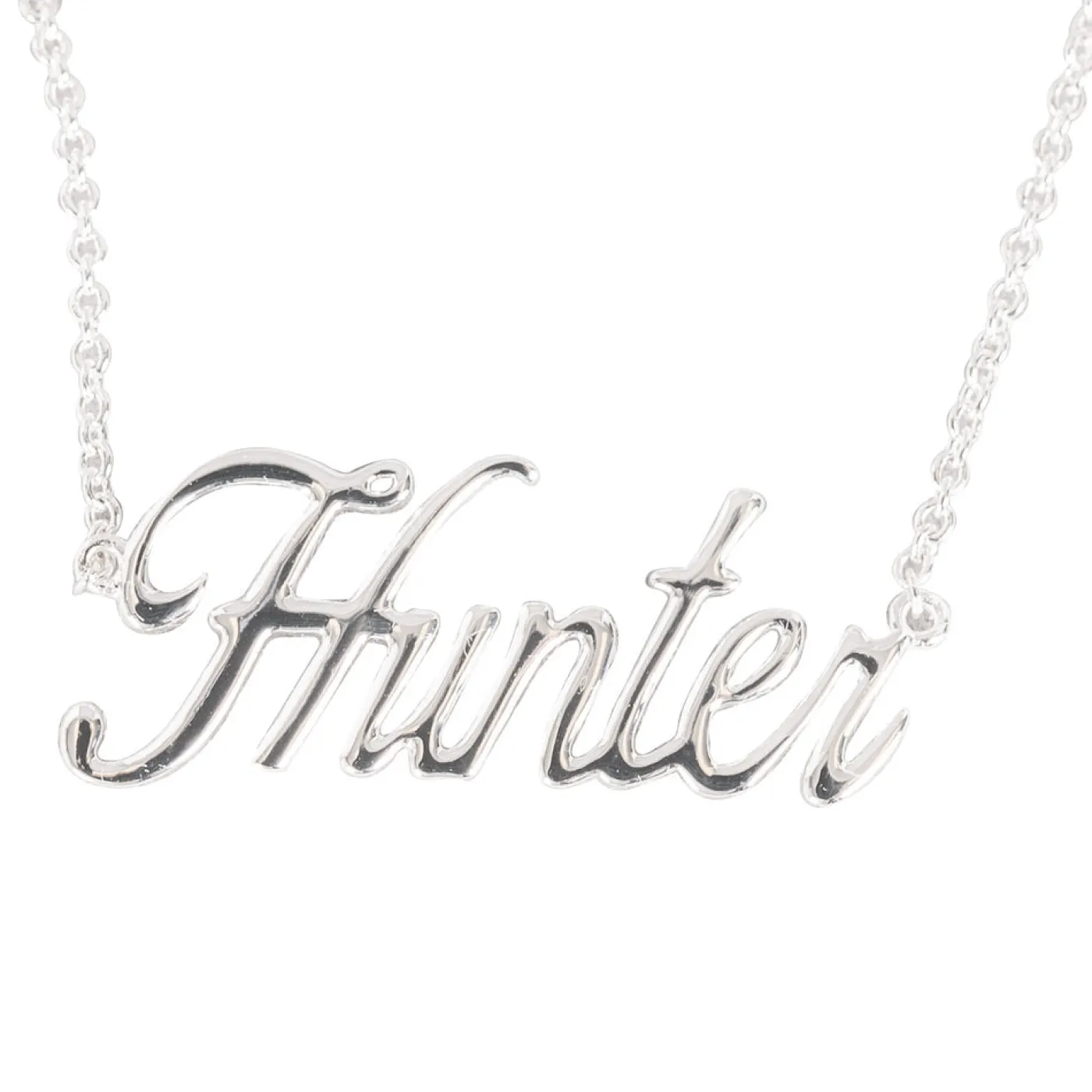 Designed with equestrians in mind! The Cinto by Kelly Herd Name Plate Necklace is the perfect gift for the Hunter rider in your life. Plated with Sterling Silver and features a beautiful Hunter plate pendant.