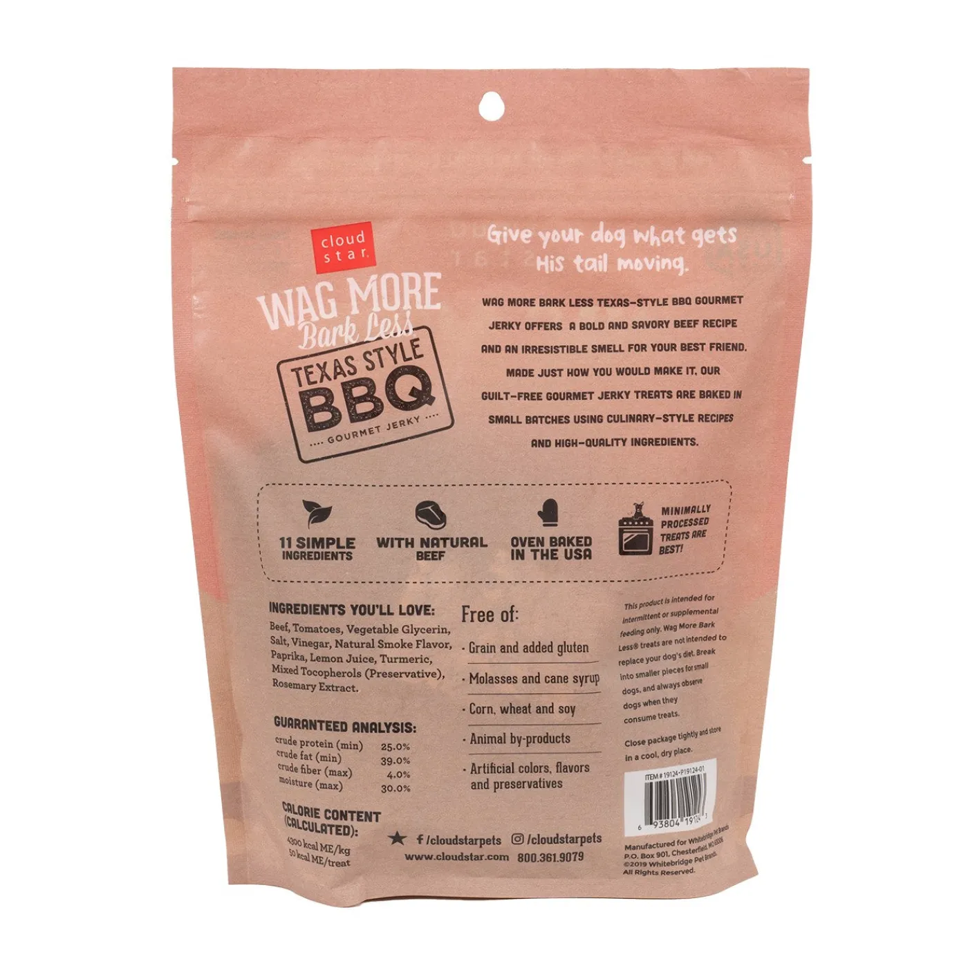 Cloud Star Wag More Bark Less Texas Style BBQ Jerky is gently mixed and dried to perfection, offering a tasty treat that your pup will love.