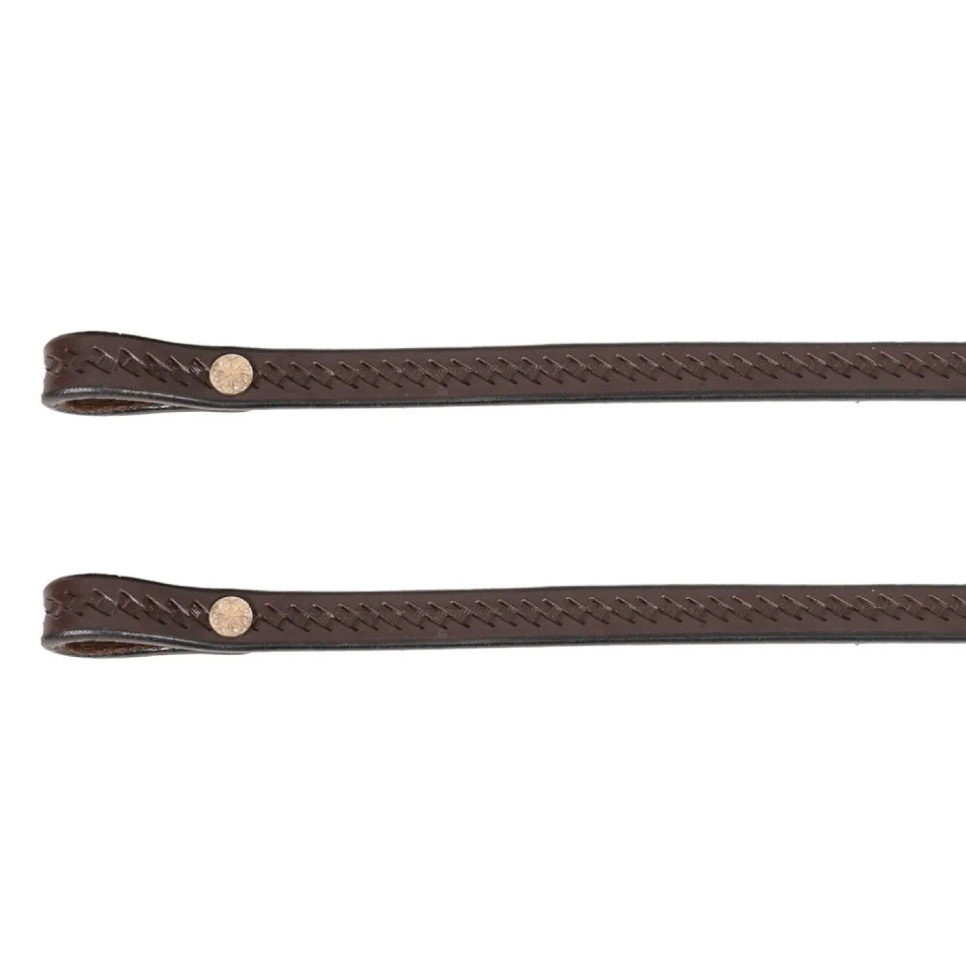 Classically designed split reins feature timeless basket weave tooling for added flair suitable in every discipline. Complete with sturdy hardware and Chicago screw closures for the bit.