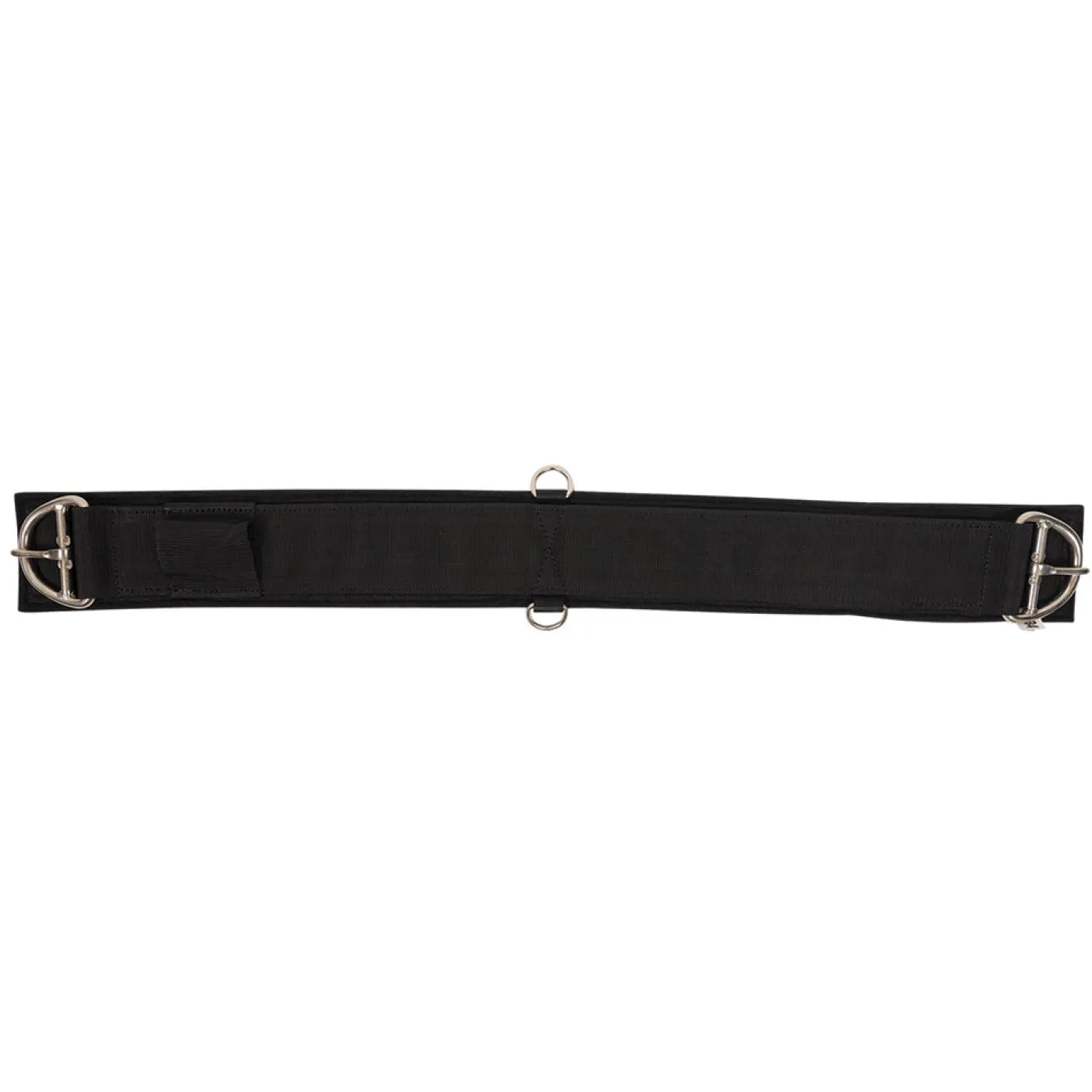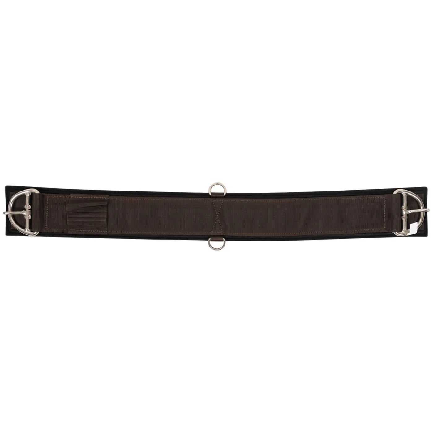 Strong nylon webbed cinch lined with ½” thick 100% felt lining that wicks away moisture to help keep your horse comfortable during long rides. Stainless steel hardware avoids rusting and 2 D-rings in the center accommodate training aids. Conveniently machine washable.