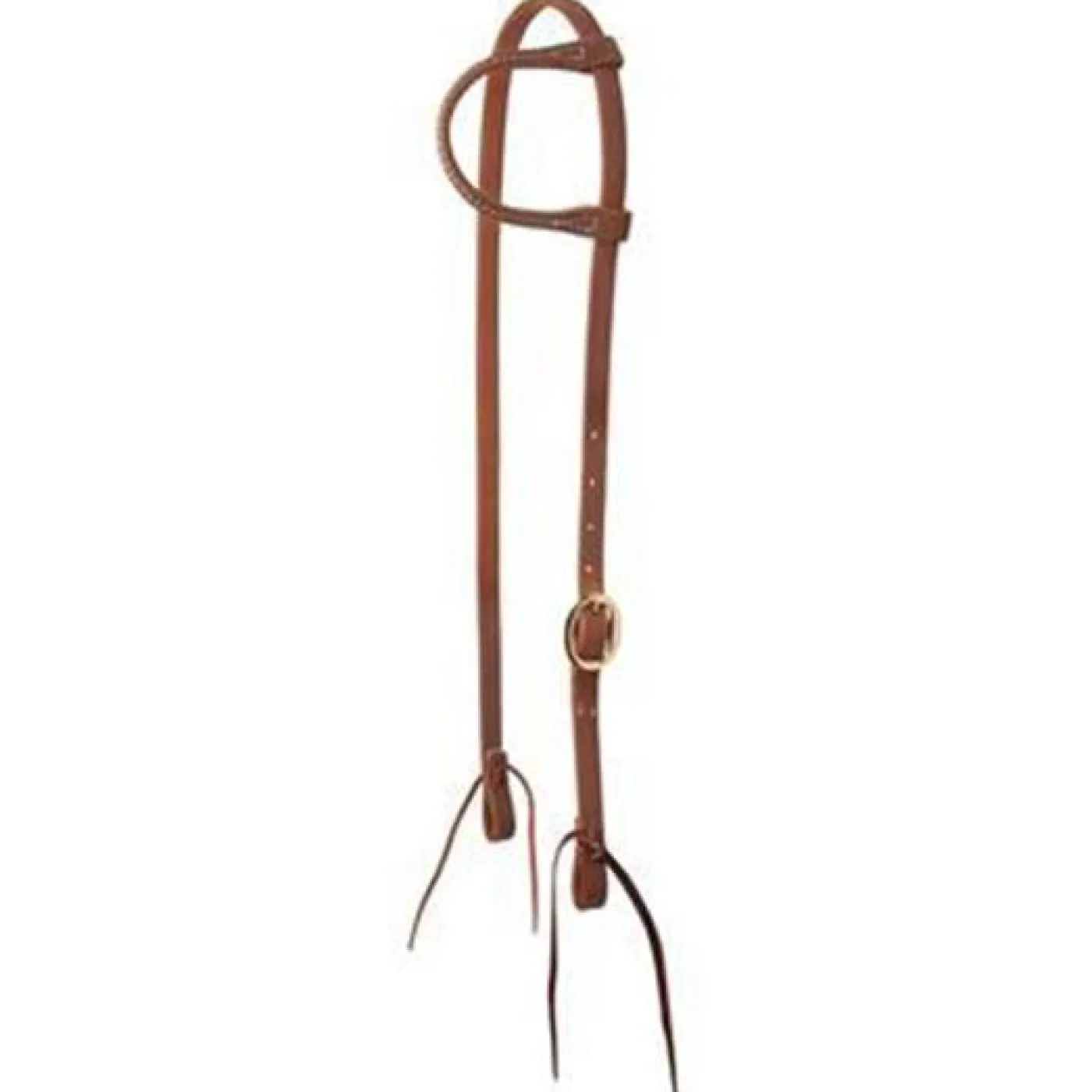Exquisitely crafted from ultra-soft Hermann Oak premium grade leather, headstall is complete with tie ends and a single buckle on the cheek. Single ear design is a simple and elegant look for Western competition rings.
