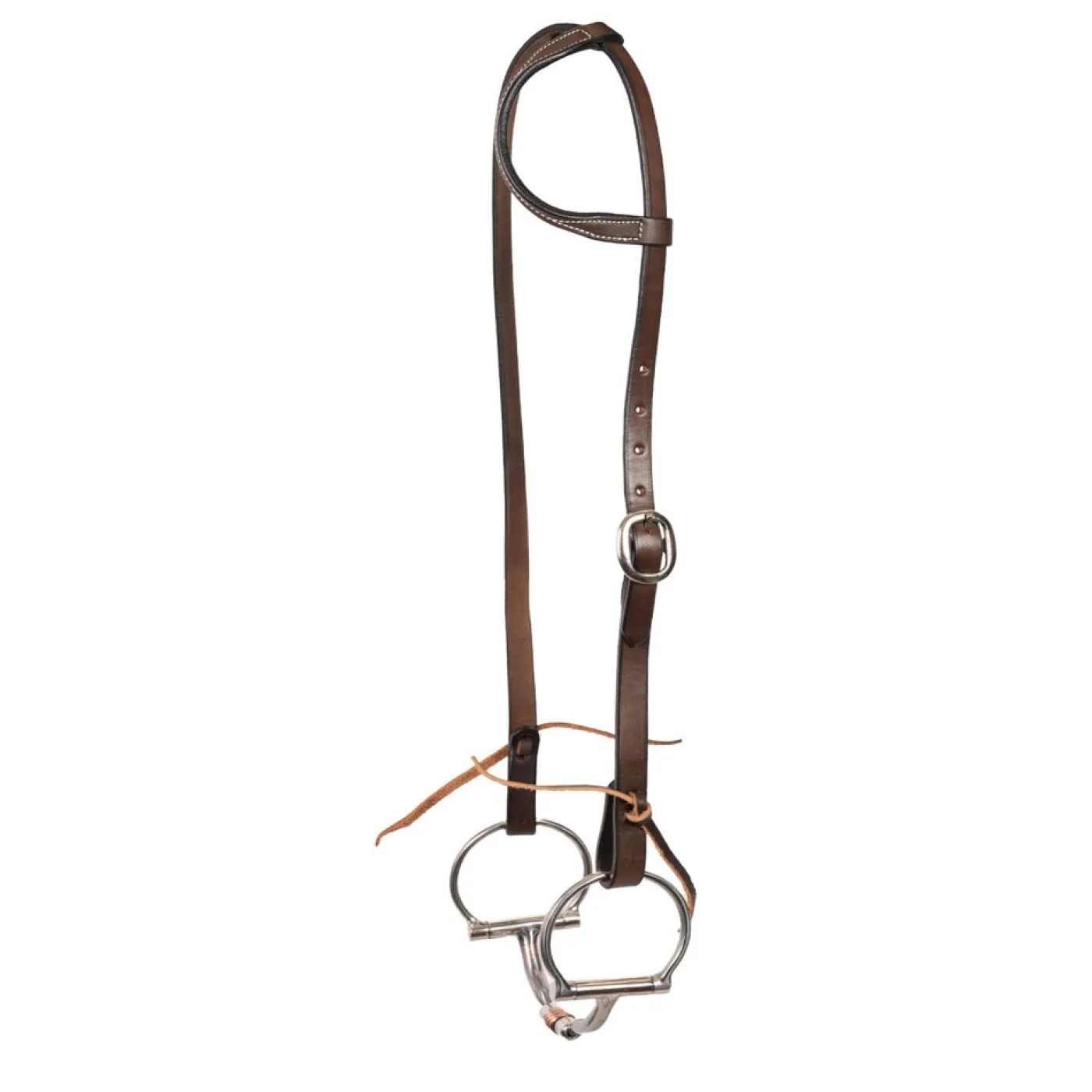 Classically designed one ear headstall features contrast stitching for added flair, suitable for every discipline. Dual-adjustability helps ensure a comfortable fit on multiple horses Complete with sturdy hardware and tie closures for the bit.