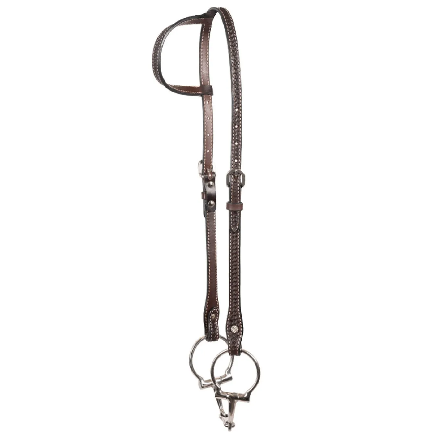 Simple and elegant, this headstall features supple leather for an exceptional fit and feel. Bridle features a traditional no slip one ear design, complete with basket tooling. Reins sold separately.