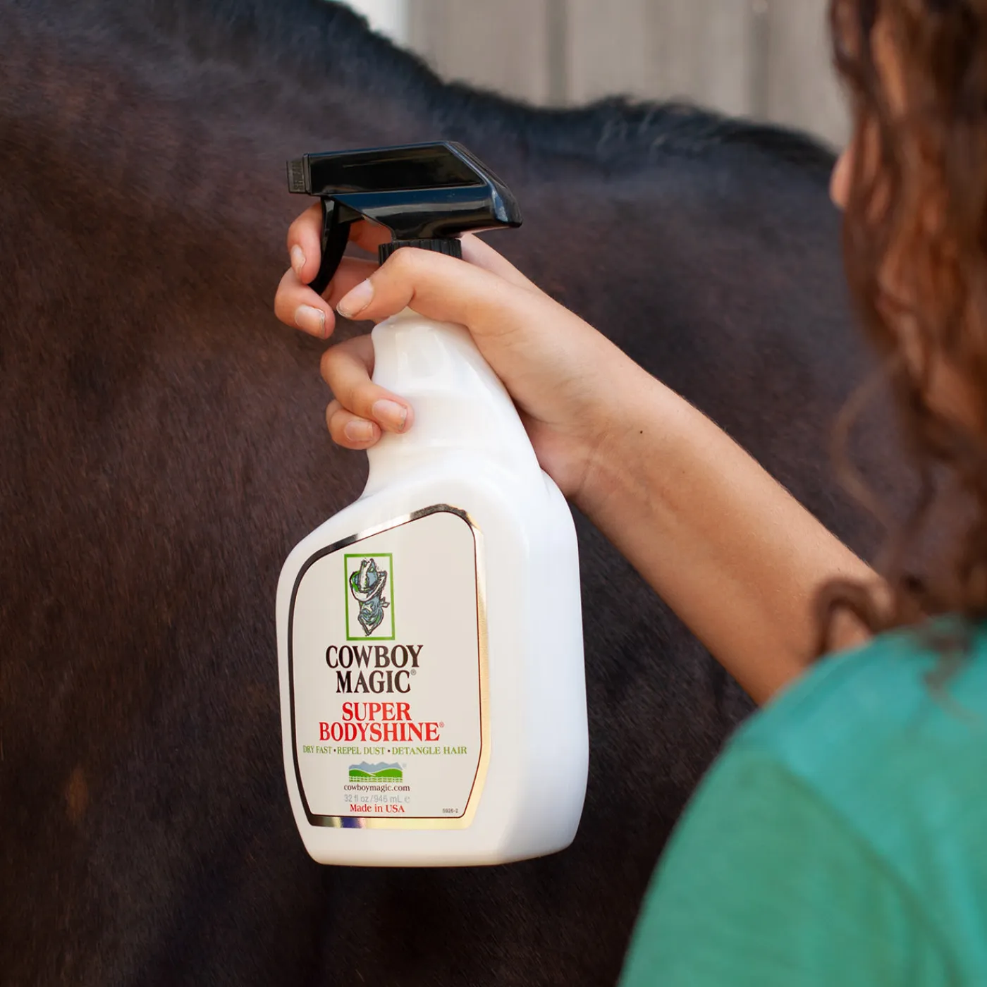 Cowboy Magic Super Body Shine is concentrated and ready to use. Formulated from nature’s natural ingredients, it works instantly to reflect a full spectrum of light resulting in a maximum, long-lasting body shine under sun or show ring lights. Deep conditioning Aloe Vera helps to strengthen and condition hair and skin.