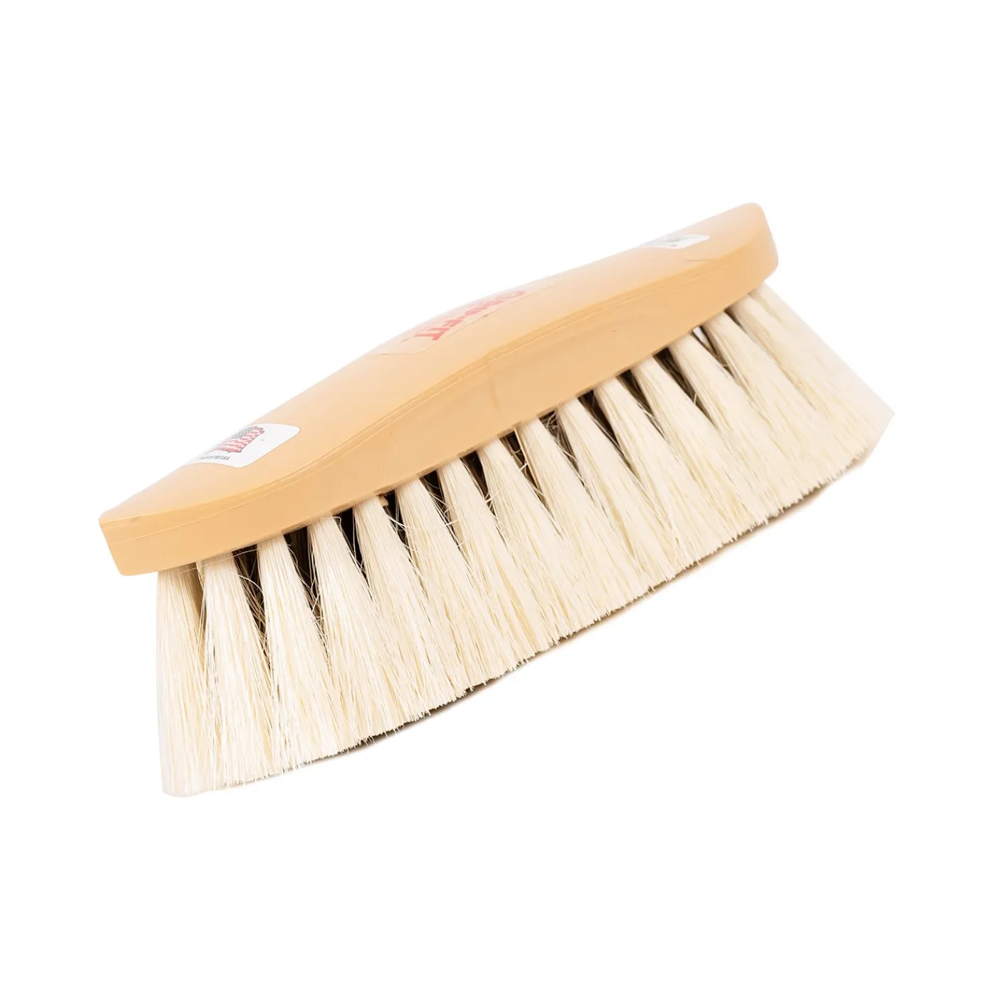 The Decker Pecos Dandy Brush is a union fiber core with tampico outer outer rim bristled brush with a full sized handle. The bristle is trimmed with Decker’s original double contoured trim to provide more surface contact. The handle is made with Grip-Fit technology to help you get just the right grip. This dandy brush is great for on shedding, dried mud and caked-on dirt.
