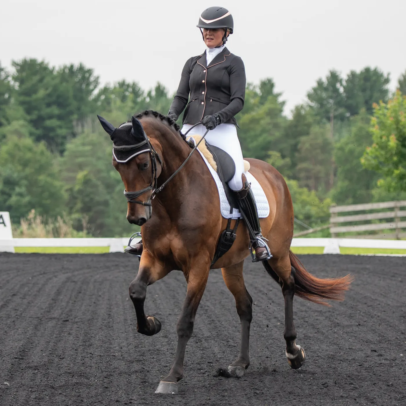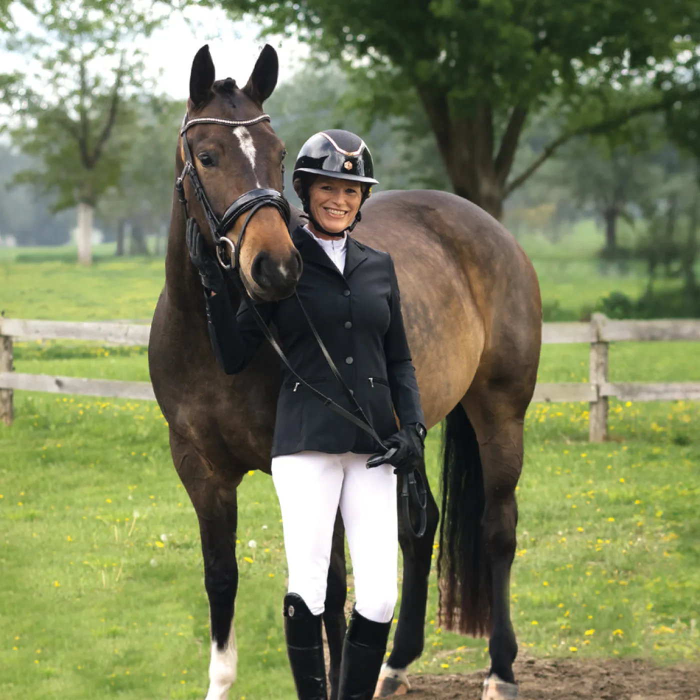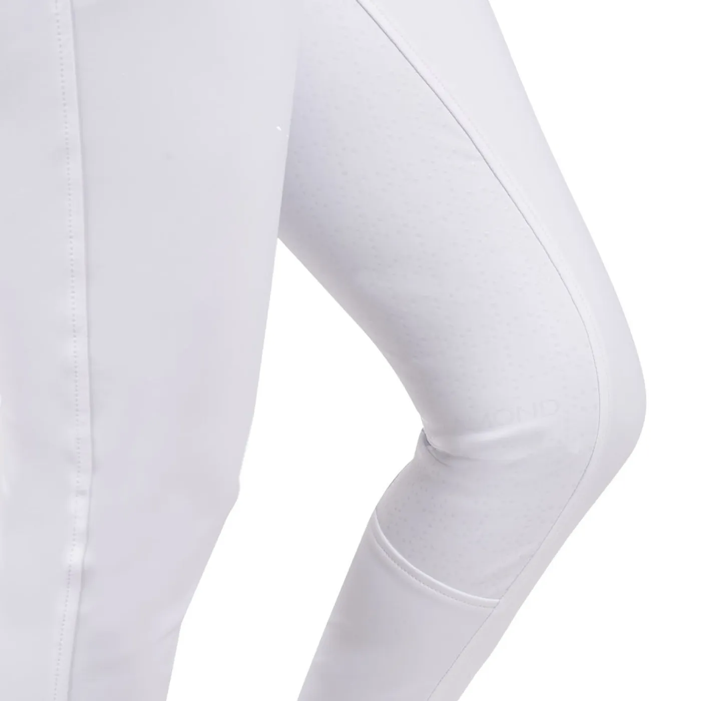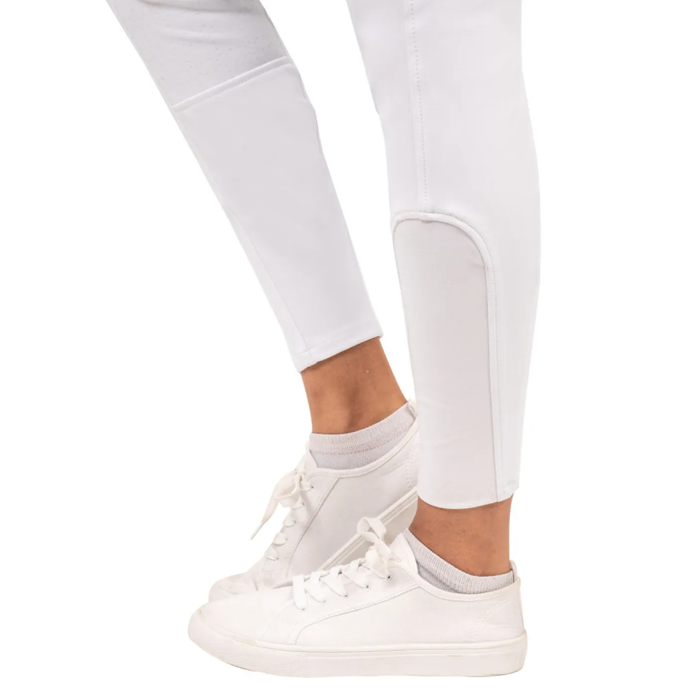 The Elation Diamond Gramercy Full Seat Show Breech offers a high waist band full seat style that is suitable for dressage riders. Features an elegant, 3 snap high rise waist with belt loops and a rose gold detailed centre loop. Constructed with two large slanted front pockets with subtle diamond studs at the corners, and rose gold snaps at the waist. Complete with a silicone full seat for added grip in the saddle with spandex socks for a smooth fit in your boots.